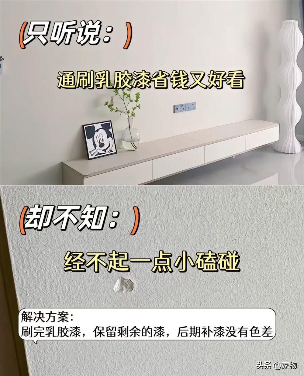 乳膠漆確實是簡單好看又實用,但也較爲怕磕碰,在刷漆的時候,一定要叮囑師傅陽角加陽角條,且最好留出剩餘的漆料,日常磕碰後自己就能隨手補上,很是方便。