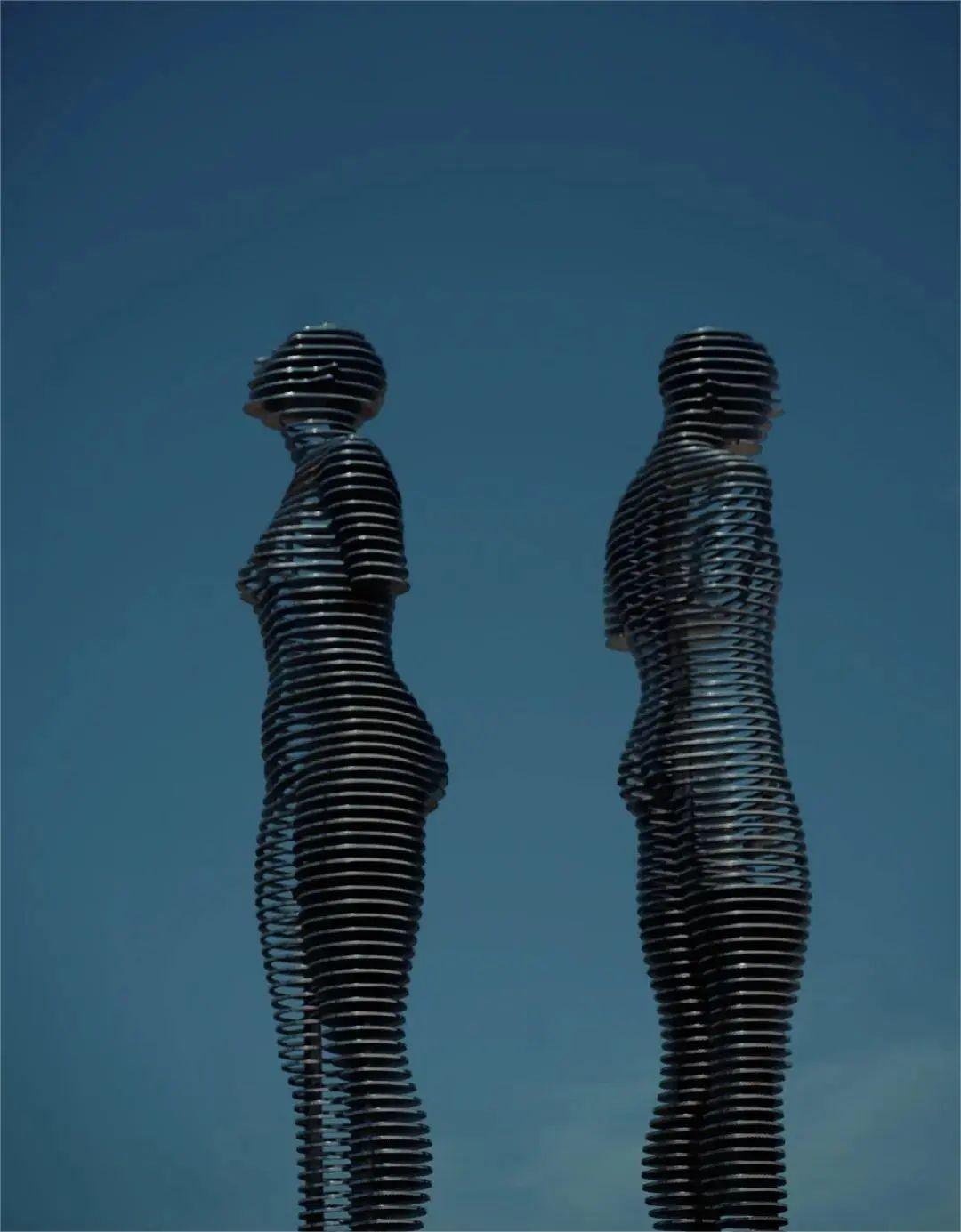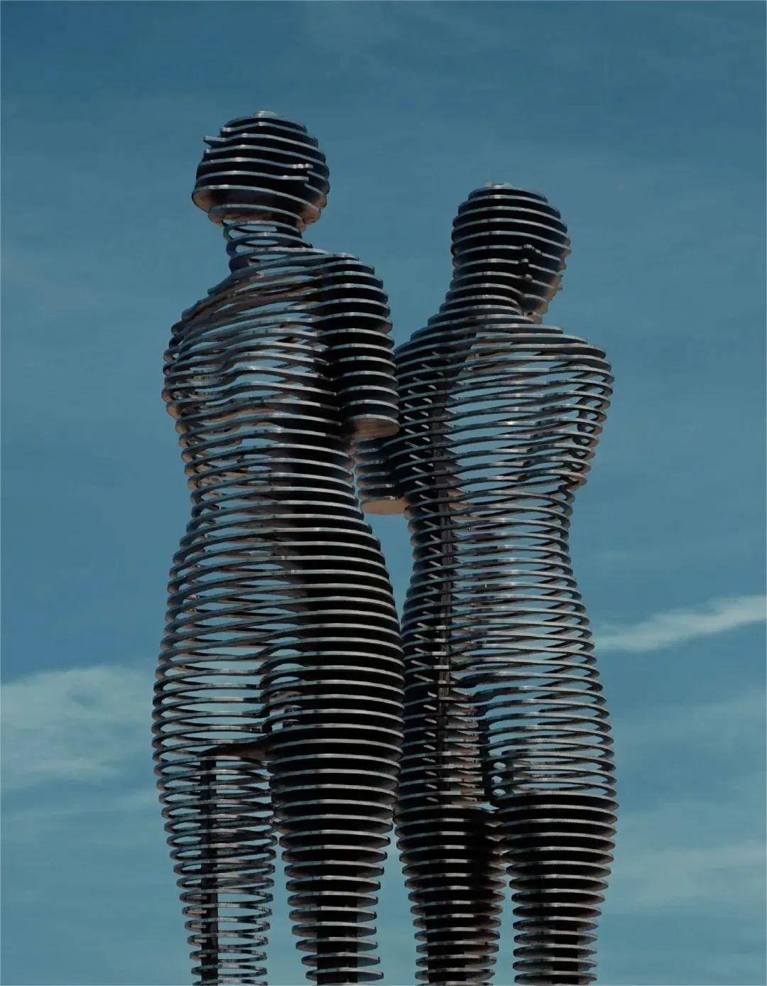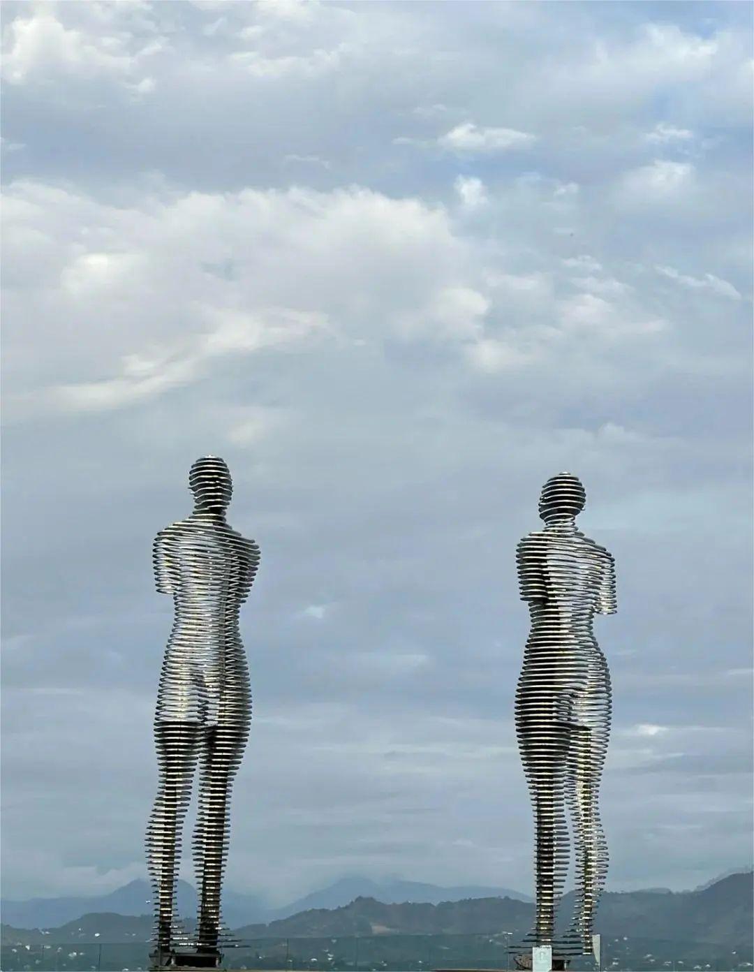 在格魯吉亞的巴統小鎮,有兩尊鋼造的8米高的動態雕塑,他們每隔六分鐘左右,相近、相擁、相吻、相離 ,日日夜夜,週而復始…