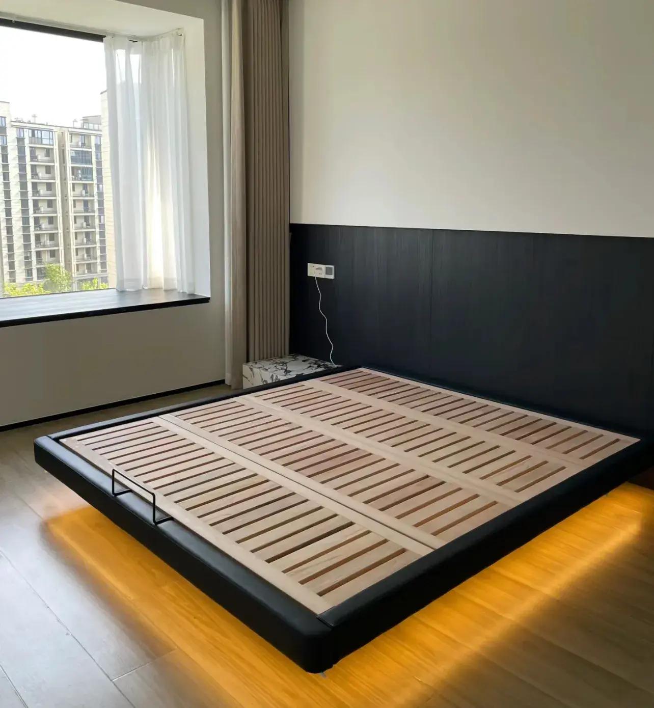 它其實是置地的,之所以有懸浮的效果,要麼是四個支腳內收到視線看不見的地方,要麼是箱牀內收,剛好錯過視線的角度。