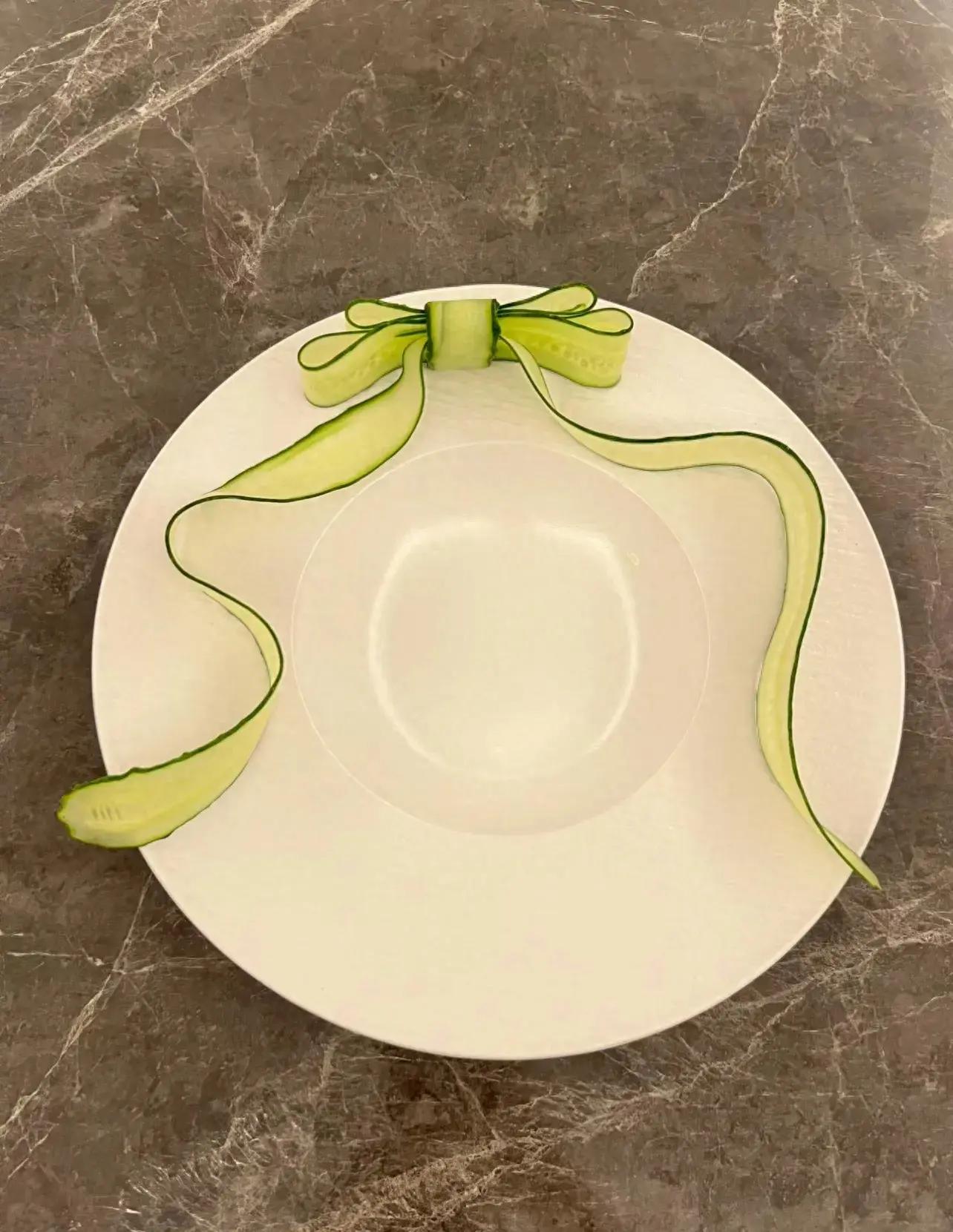 本來以爲這種擺盤,得專業的大廚才能完成,殊不知它實現起來其實很簡單,普通人在家也能做,用到的東西也是最常見的食材——黃瓜。