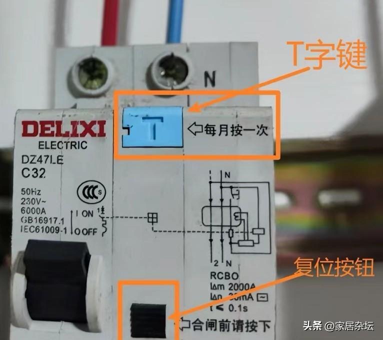 對於漏保而言,在它的側邊一般有一個黃色的小按鈕。在按鈕旁邊,會寫上一行字:每個月按一次。
