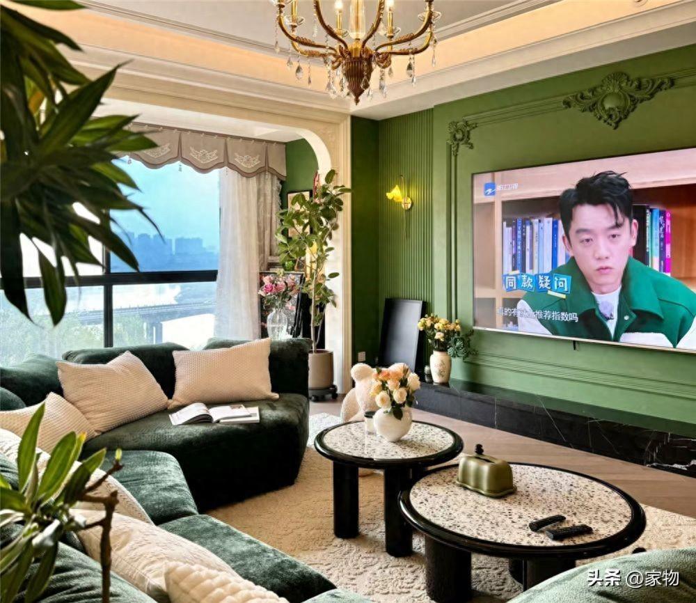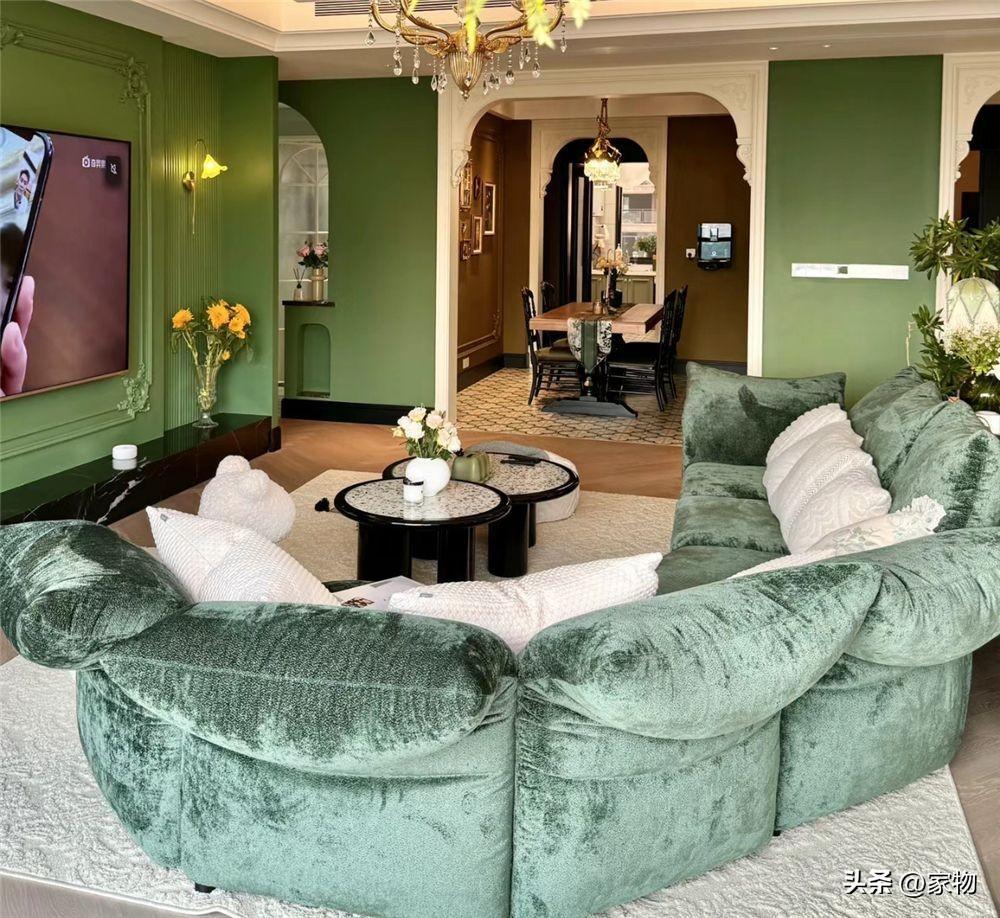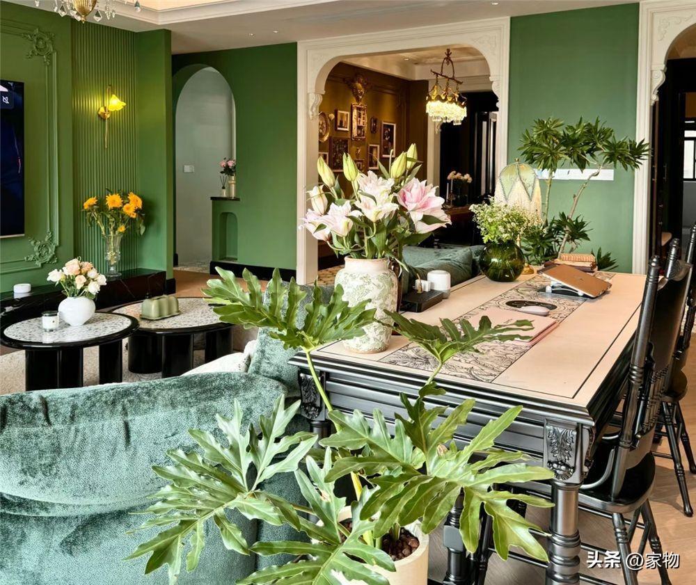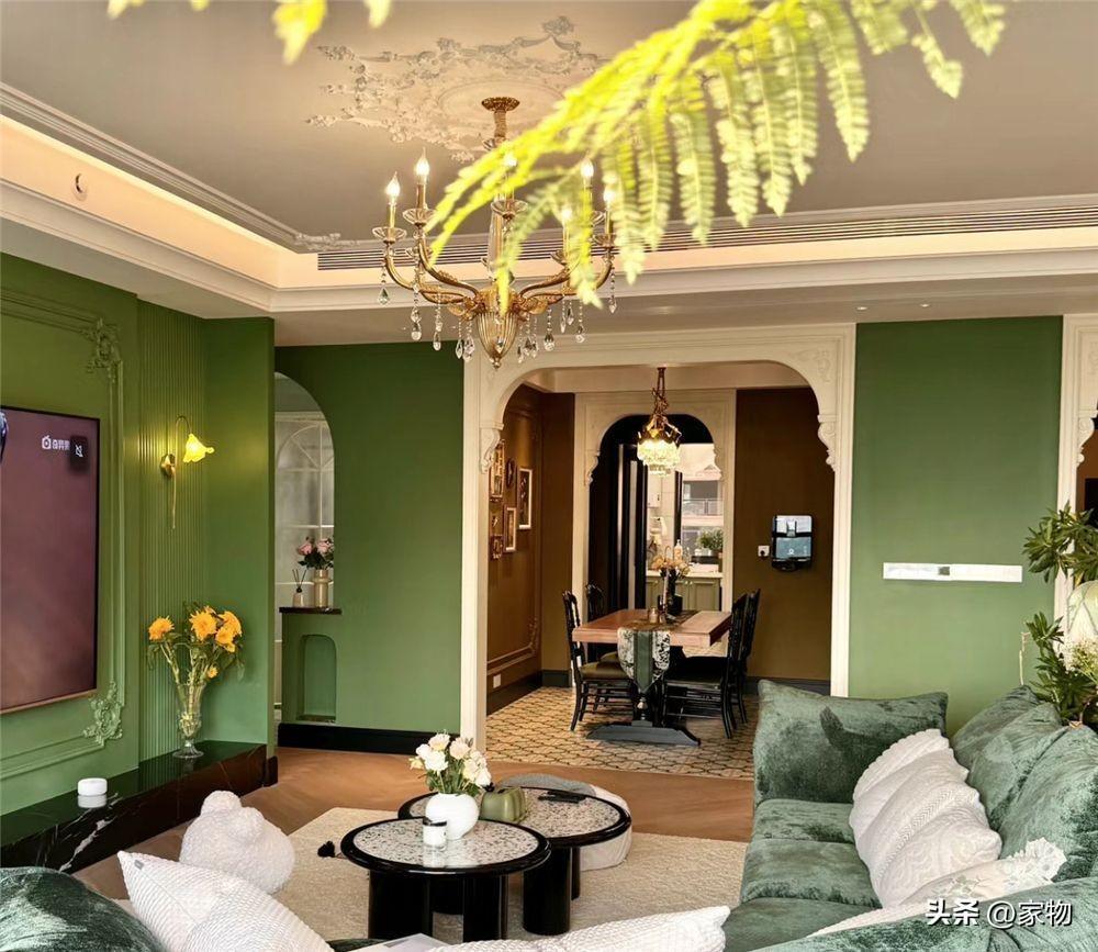 一女子220㎡大平層客廳火了,因綠色復古裝修走紅,太會佈置了吧