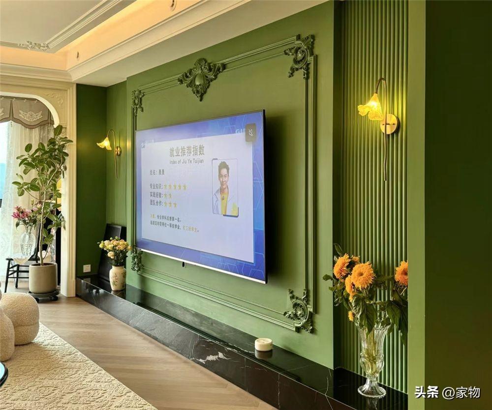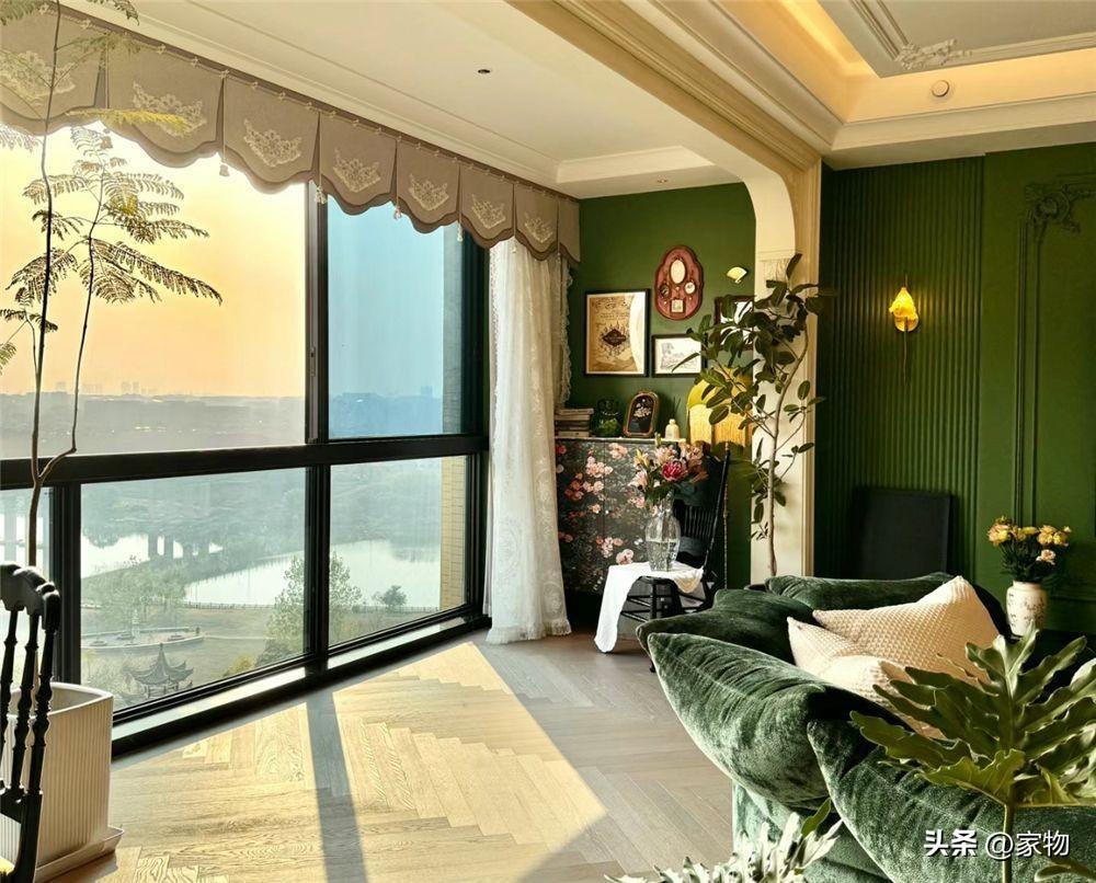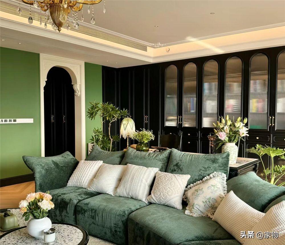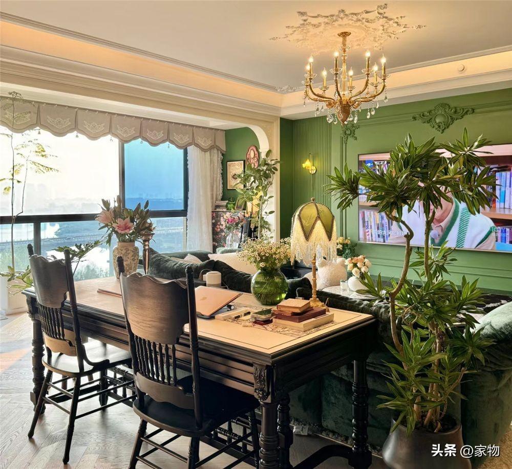 一女子220㎡大平層客廳火了,因綠色復古裝修走紅,太會佈置了吧