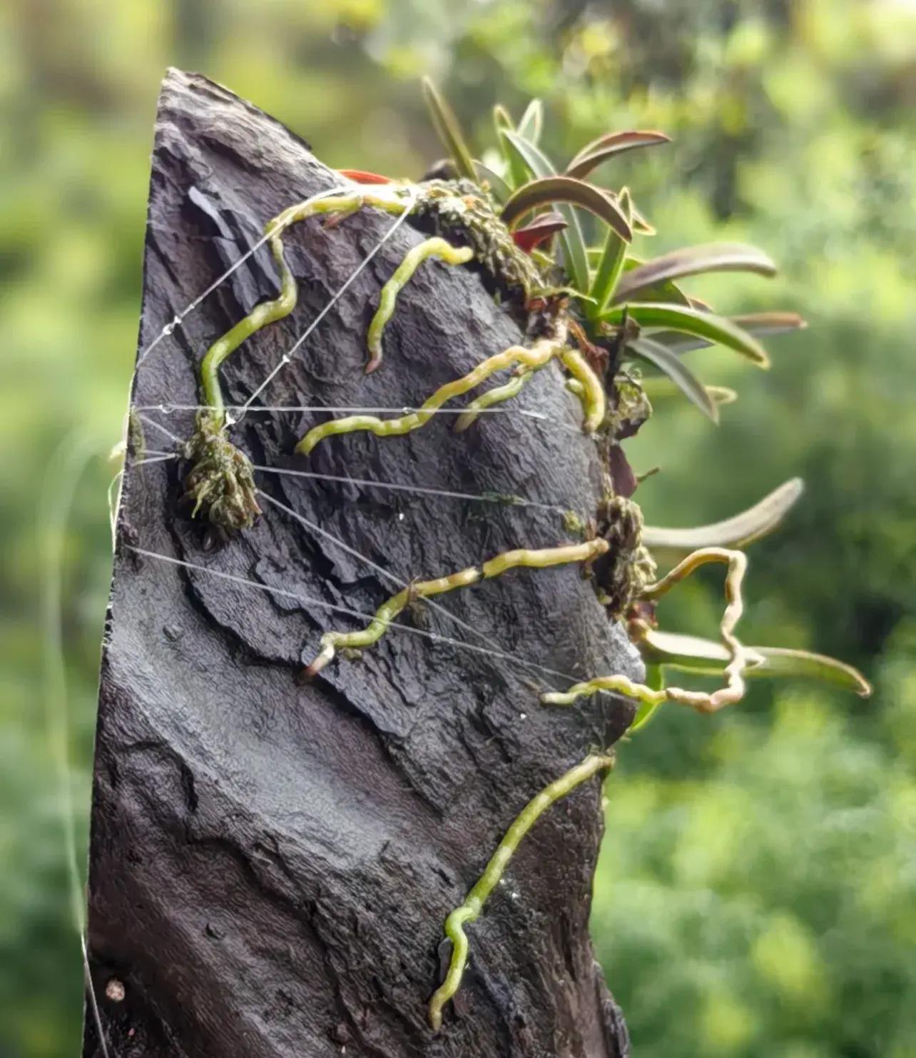 鳳蘭也是,氣生根植物,所以種植方法跟石斛一樣,綁繩子等生根即可。