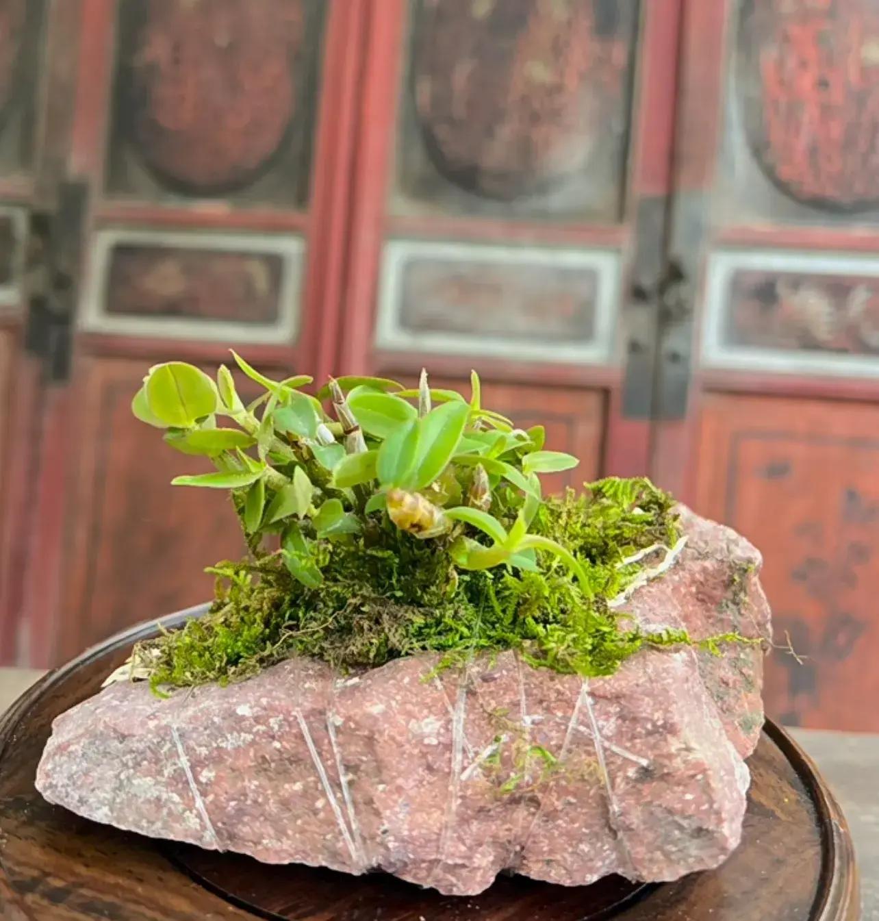 所需素材:鼓槌石斛、木頭、石頭