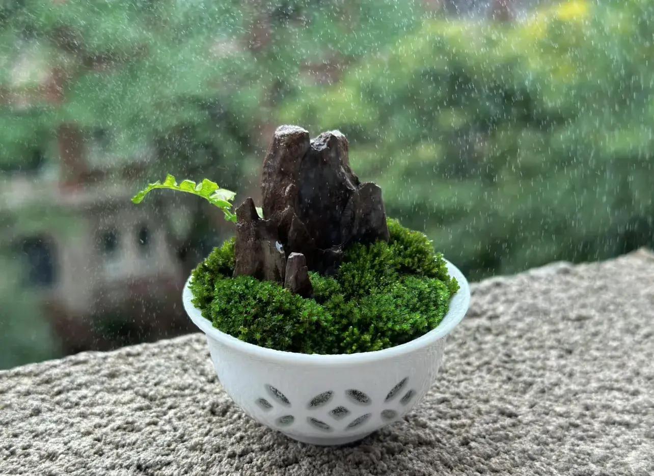 苔蘚簡單,主打一個潮溼陰涼,所以,放在家裏除冰箱外,最不見陽光的地方,然後有事沒事噴噴水,就能長得很好。