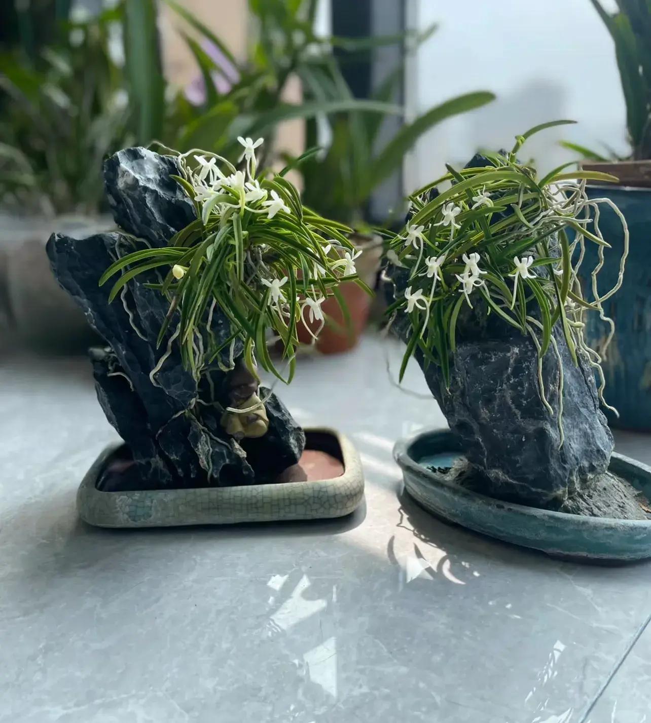 首圖中的附石附鼓槌石斛,時間稍微久一點,一共養了三年纔到了這種程度。