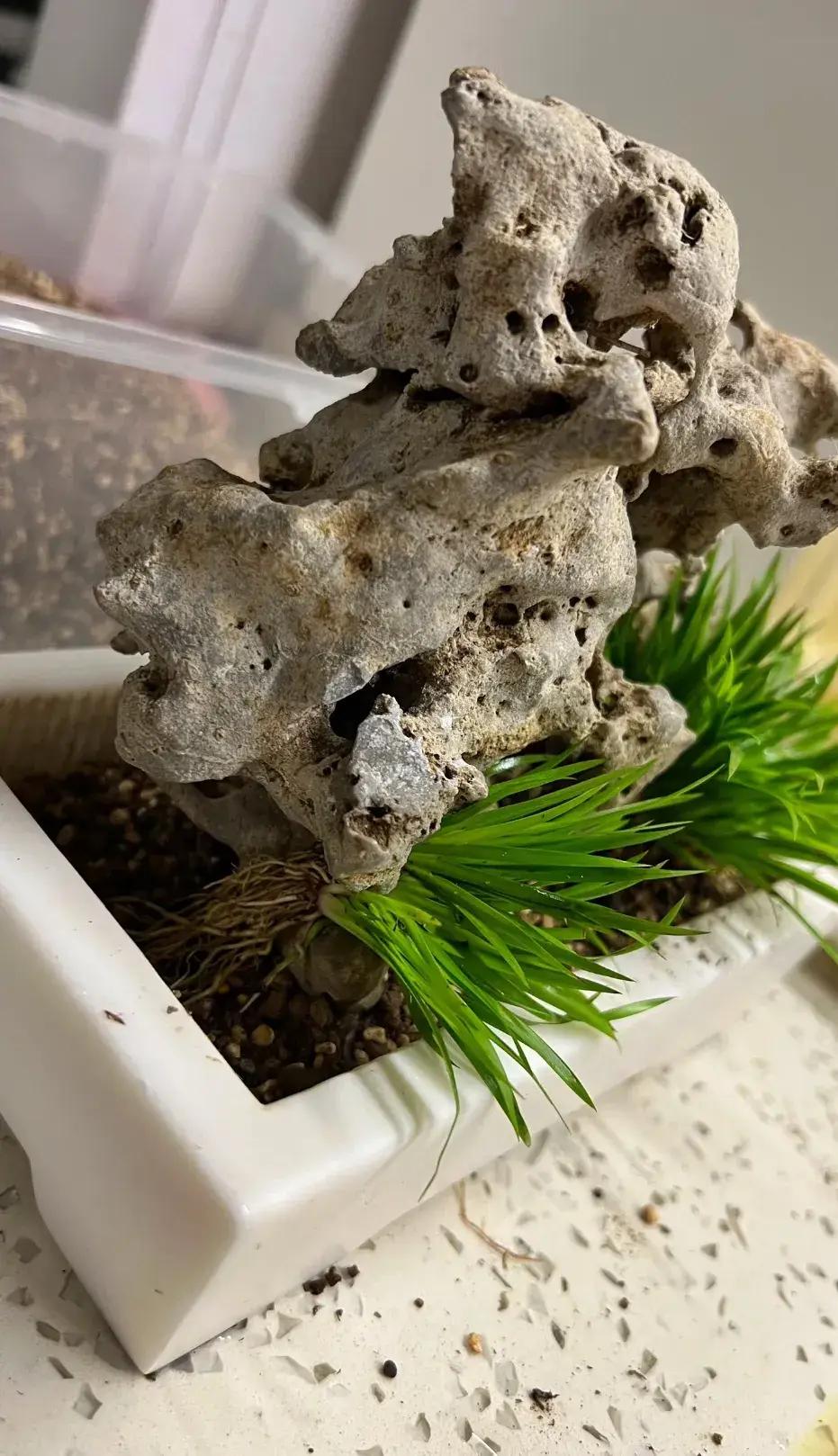 就是風化石佈置好,然後再把仙人球,移種到盆裏,整個過程就是倒個盆,沒有養護期,也不存在緩苗。