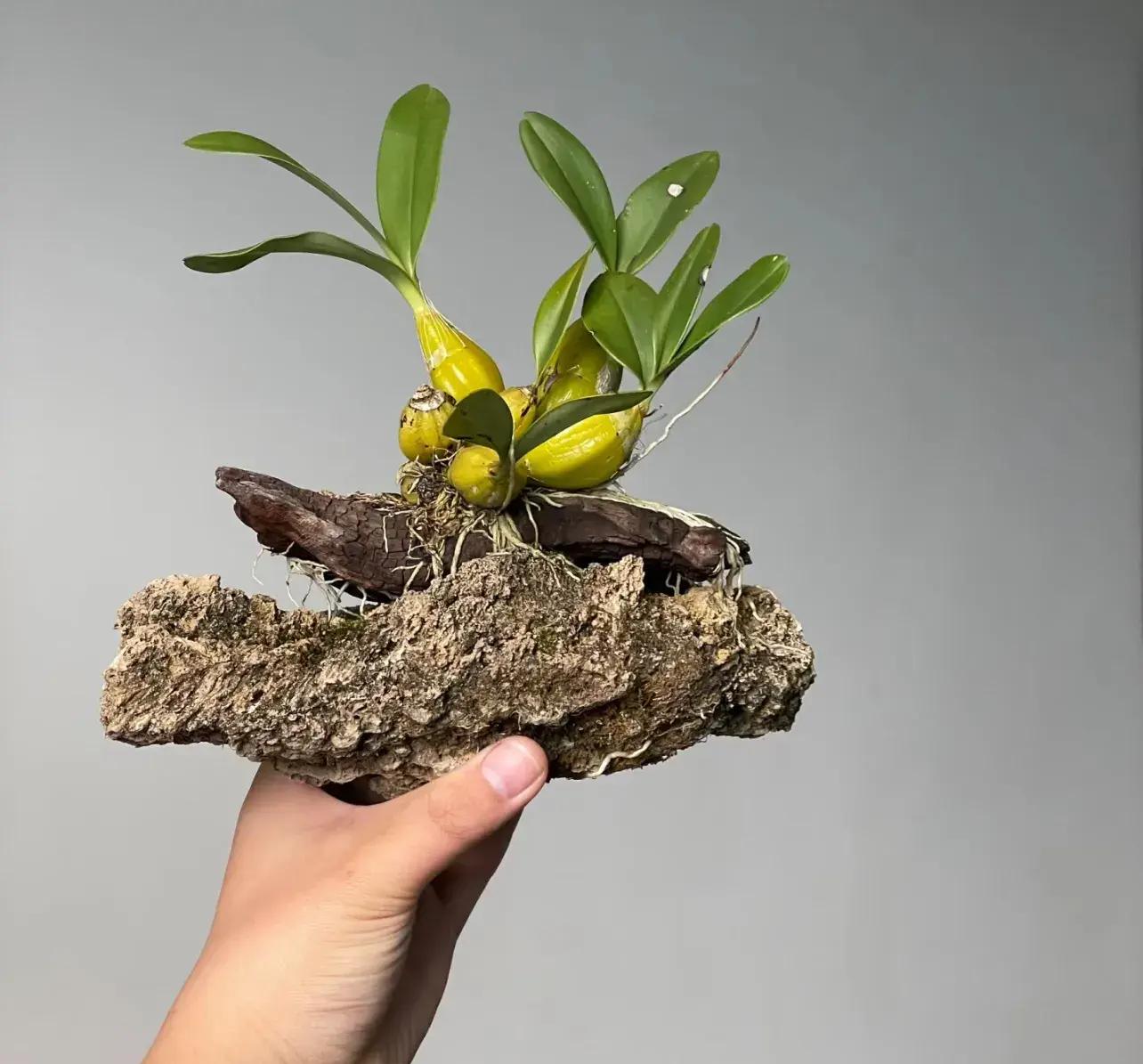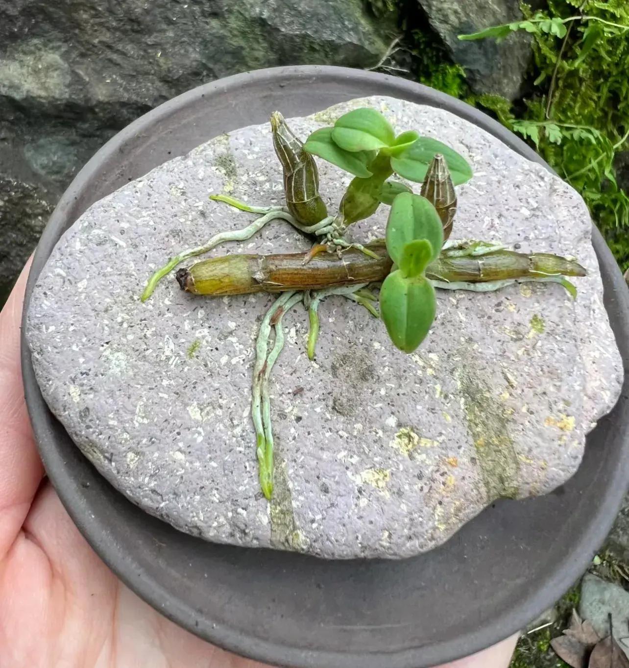 上圖中這個是先讓石斛附木,然後再把木頭放在石頭上附石。