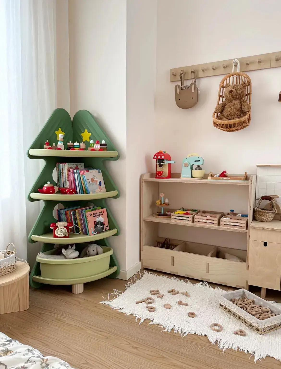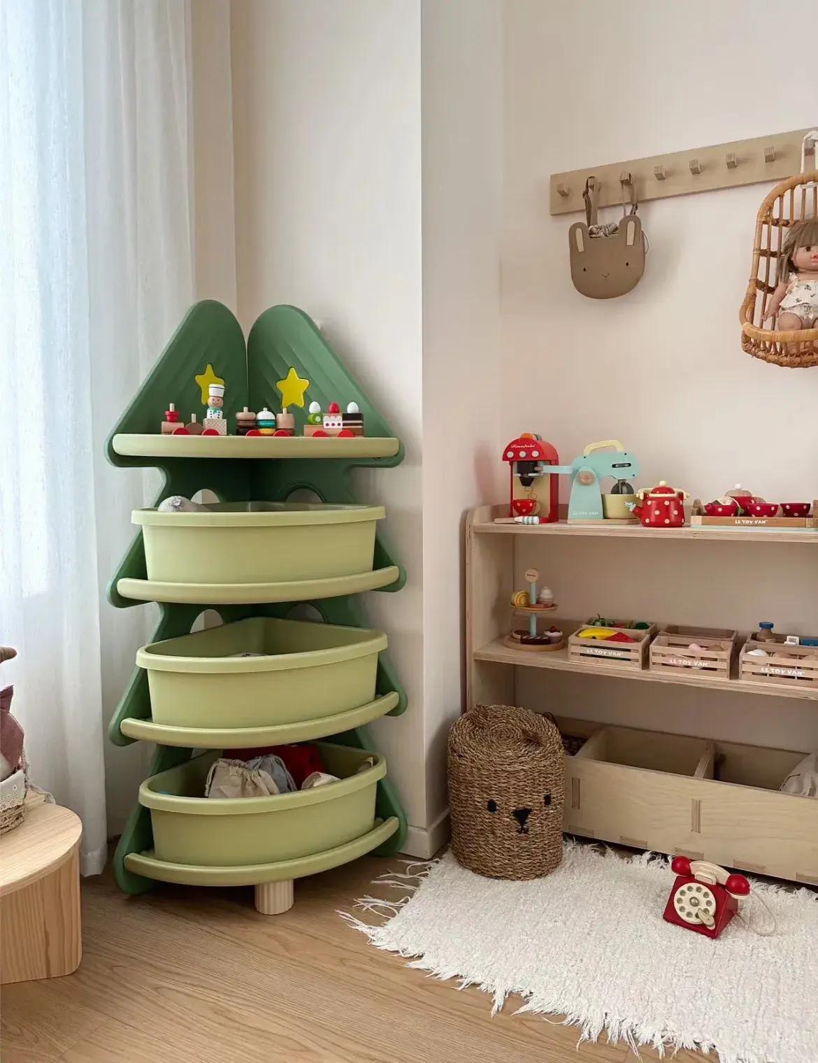 我呢,本着方便又好看的原則,就選擇了這種聖誕樹造型的玩具架。