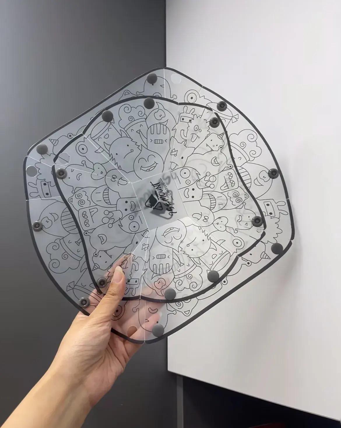 厲害的是它切完之後,可以變形,上面的卡扣卡起來,不同大小的則可以變成不同尺寸的碗、盤。