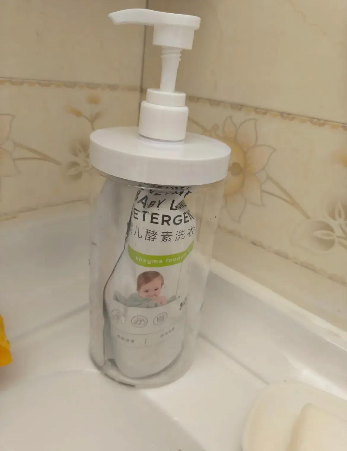 買回家的袋裝洗衣液,有一部分人會倒在之前用過的瓶子裏,而我,用的是廣口按壓瓶。