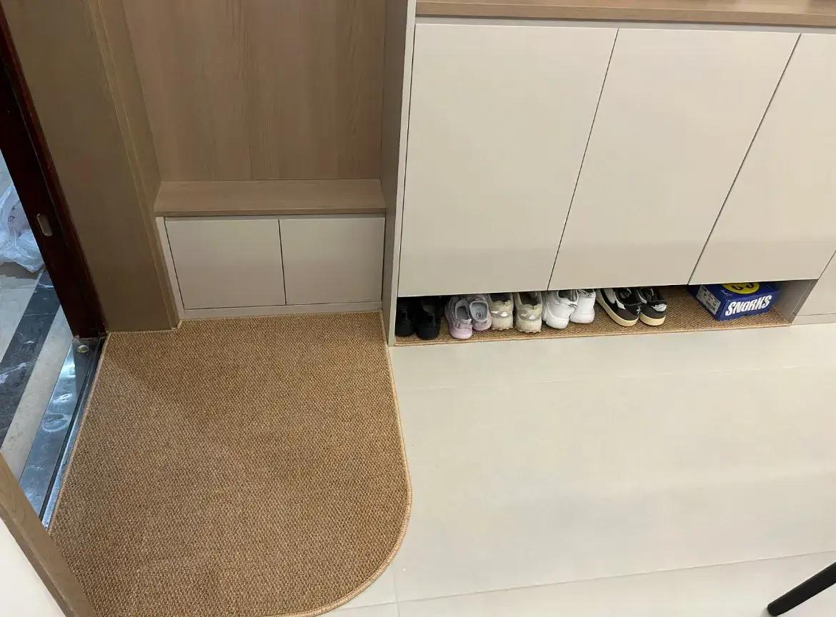 然後就是可以根據自己的喜好定製弧角,像我家,入戶門不算寬敞,直角會顯得逼仄與呆板,一個角變成弧形後,多了一點靈動與柔和;