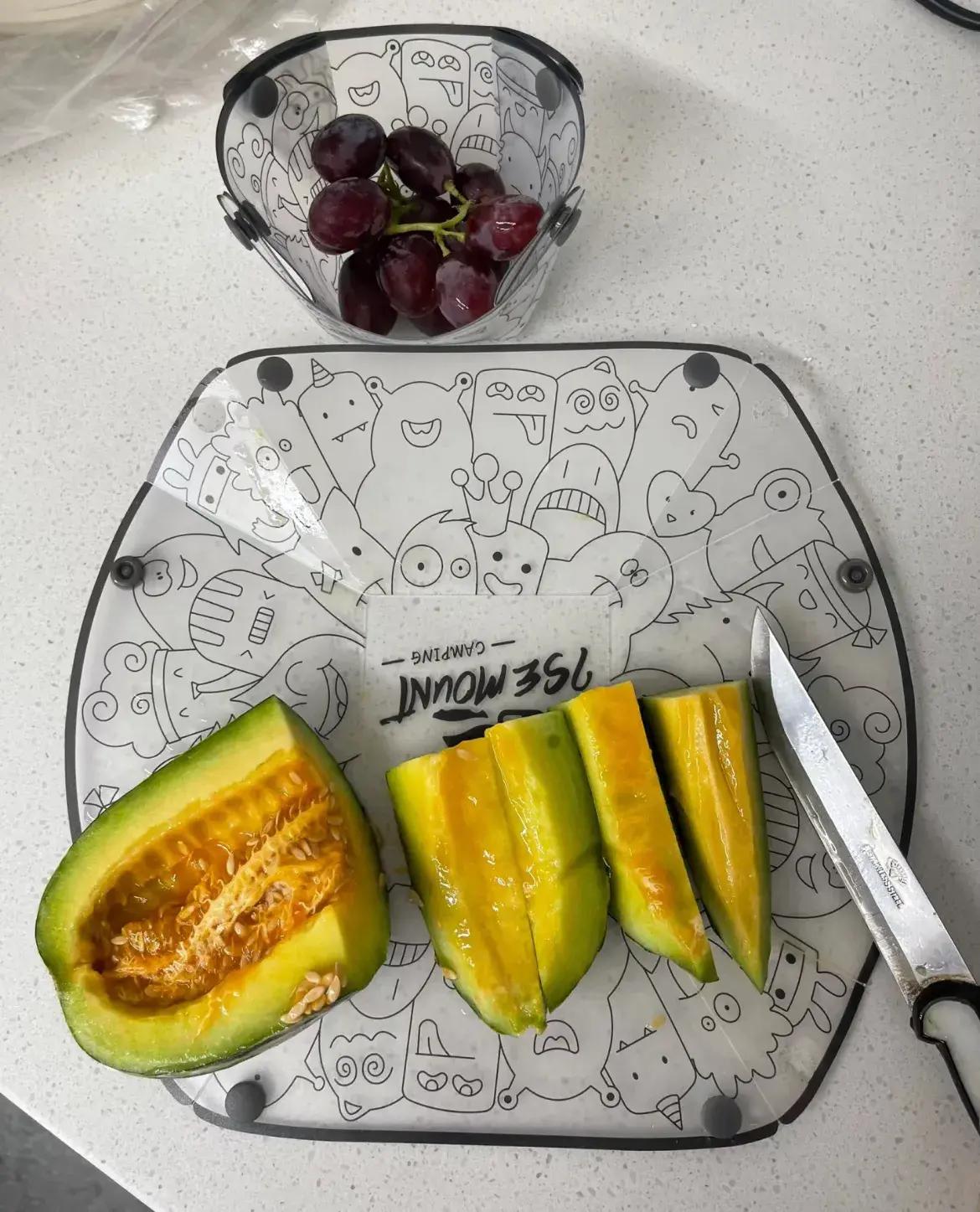 有一次公司團建露營,我帶了這個摺疊水果盤,可是把我那些同事們驚豔了一把。