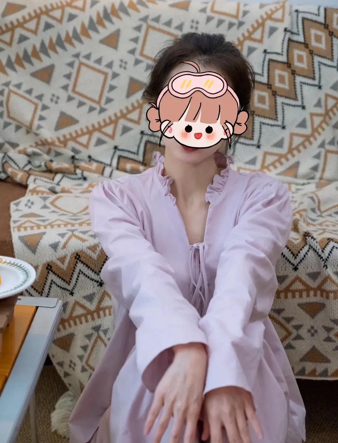 這個睡衣我真的喜歡了好久纔拿下的,我喜歡它淑女又文靜的小花邊領,也喜歡它胸前綁帶的儀式與氛圍感。