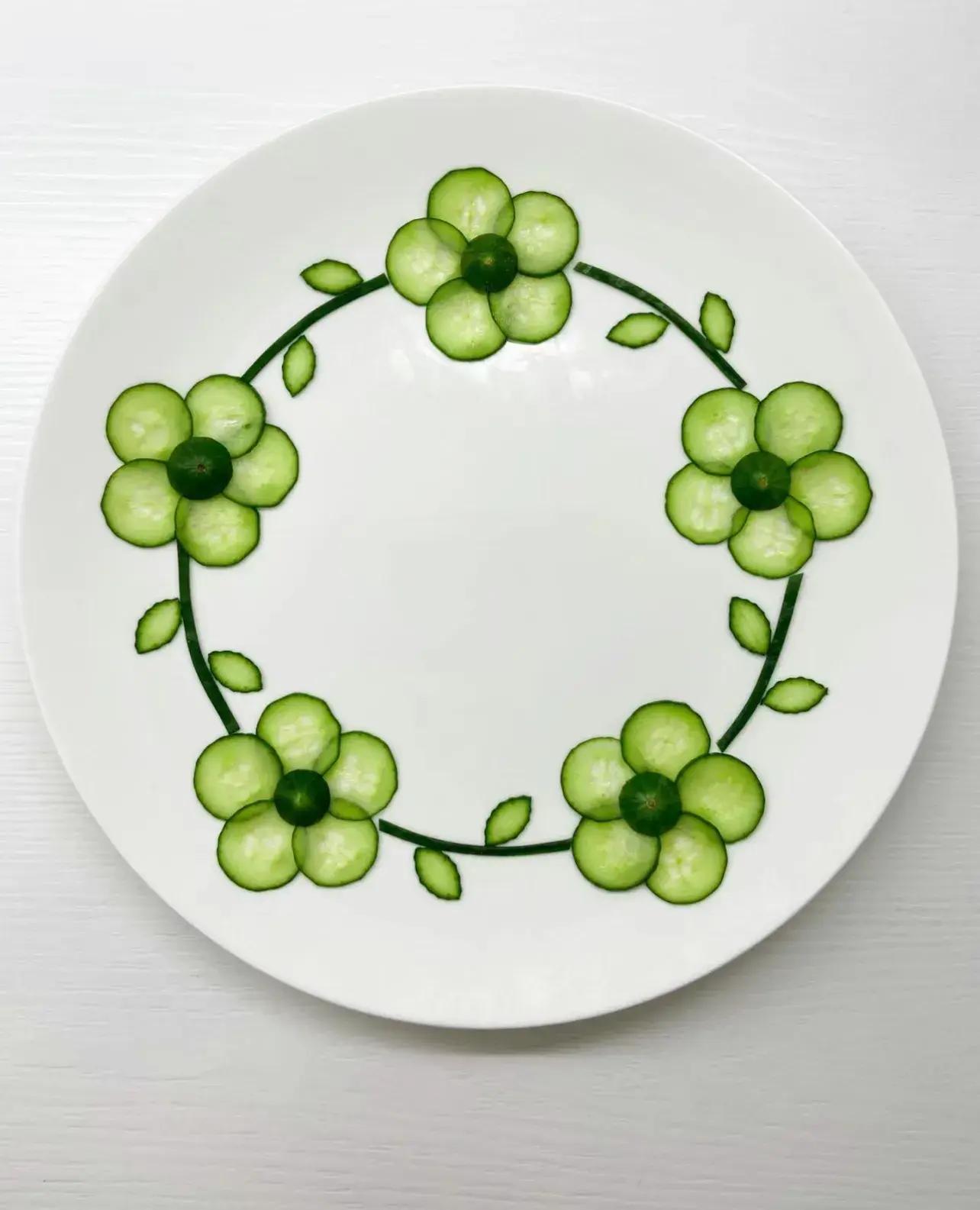 本來以爲這種擺盤,得專業的大廚才能完成,殊不知它實現起來其實很簡單,普通人在家也能做,用到的東西也是最常見的食材——黃瓜。