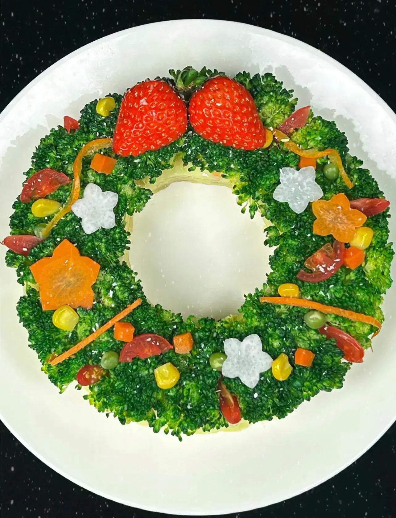 沒錯,就是土豆+西藍花做聖誕花環。