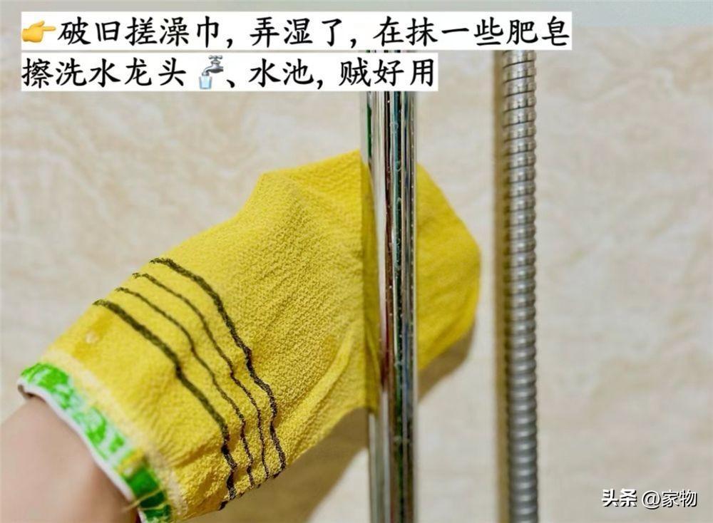 破舊的洗澡巾,甚至用到鬆緊帶都“失靈”了也依舊捨不得扔,而是會用它來清潔家裏水管或水龍頭上的水漬,你別說,配合上小蘇打清潔效果是真不錯。