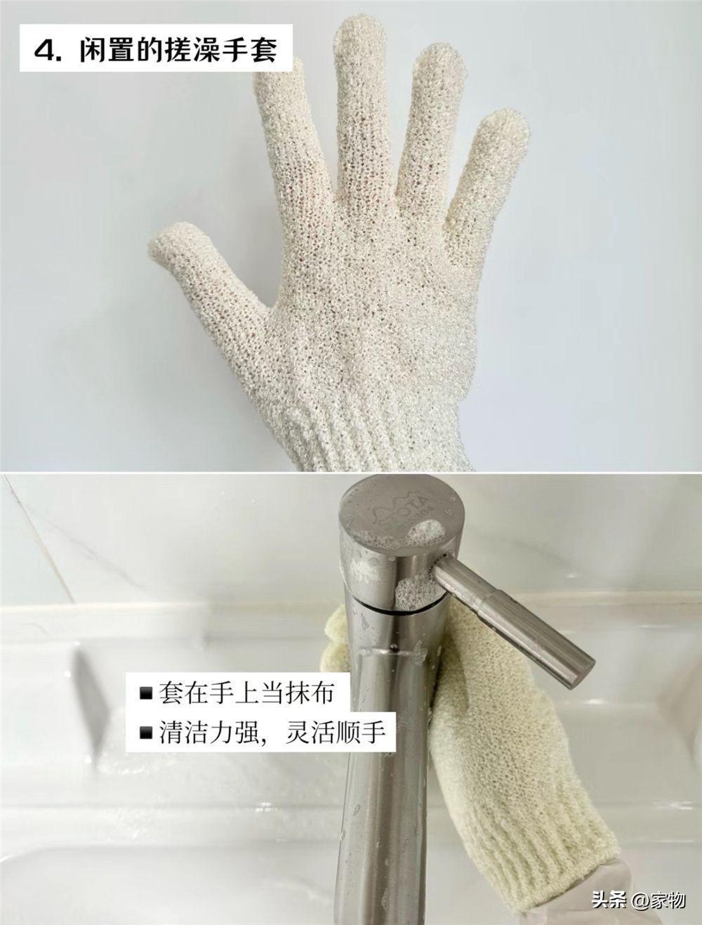 它比鋼絲球柔和一些,又比普通的百潔布更能去污,套在手上擦拭水龍頭或者其他的五金件,能很快讓它們恢復光澤,真的好用!