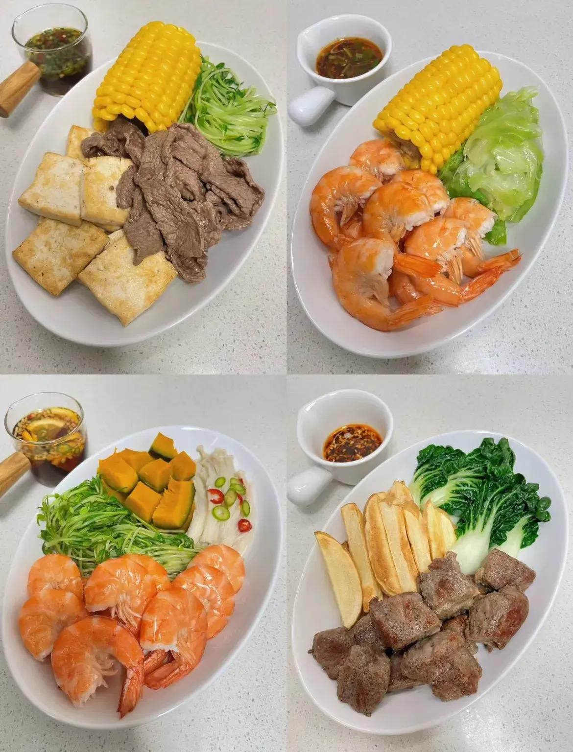 各種水煮菜、肉,看着口味好像差點,其實搭配上蘸汁,口味也不賴。