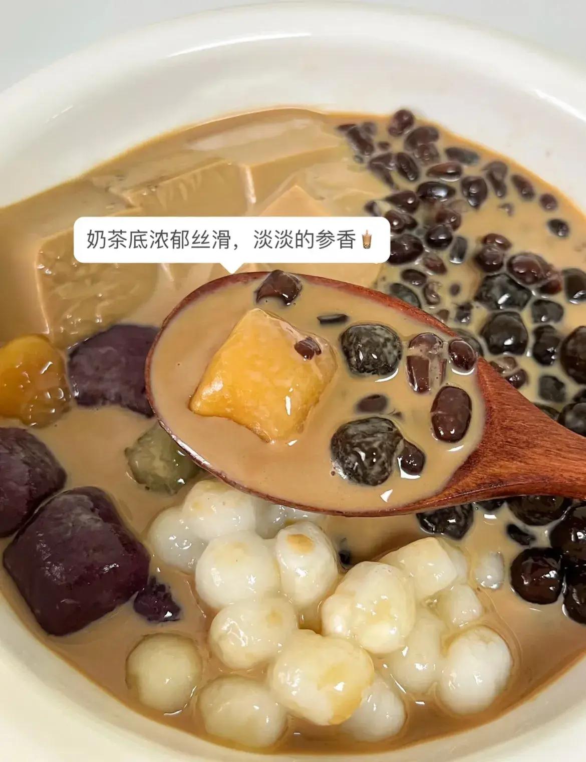 然後再倒入牛奶,繼續烤,出來的奶茶不僅色澤滿分,味道也濃郁,而且還有一層超級好喫的奶皮子。