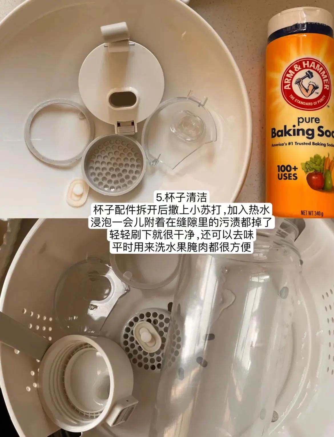 杯子等牽扯縫隙小件的物品清潔,用小蘇打+熱水,增加活性,輕輕刷洗下就能很乾淨。