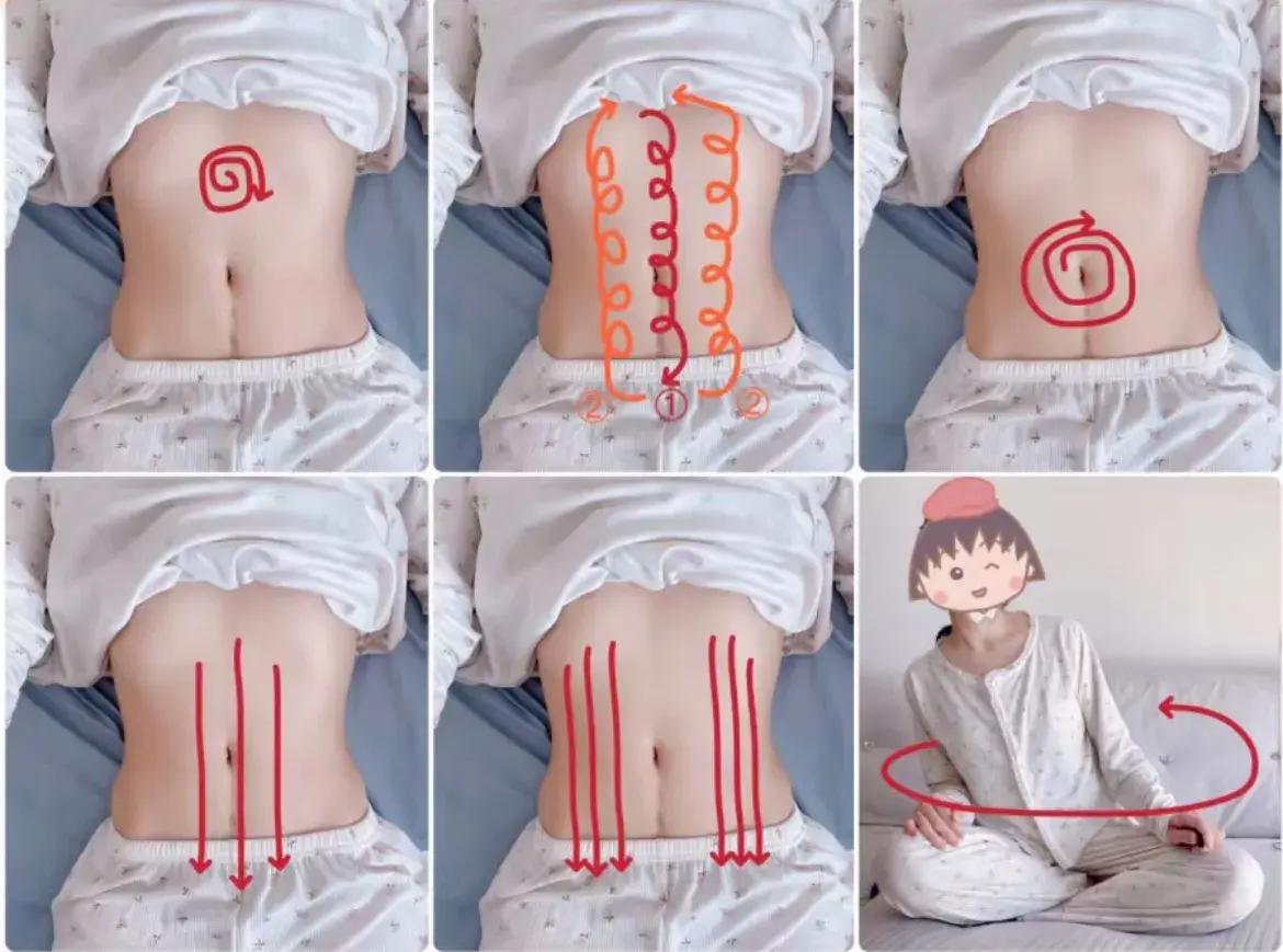 除了互按,還有一些單人按摩指導,其中我最喜歡的就是仙人揉腹,如下圖,每天睡前在肚子上揉揉搓搓幾組,書上說可以健脾胃、去溼氣、通中焦、改善上交熱下肢冷的問題。