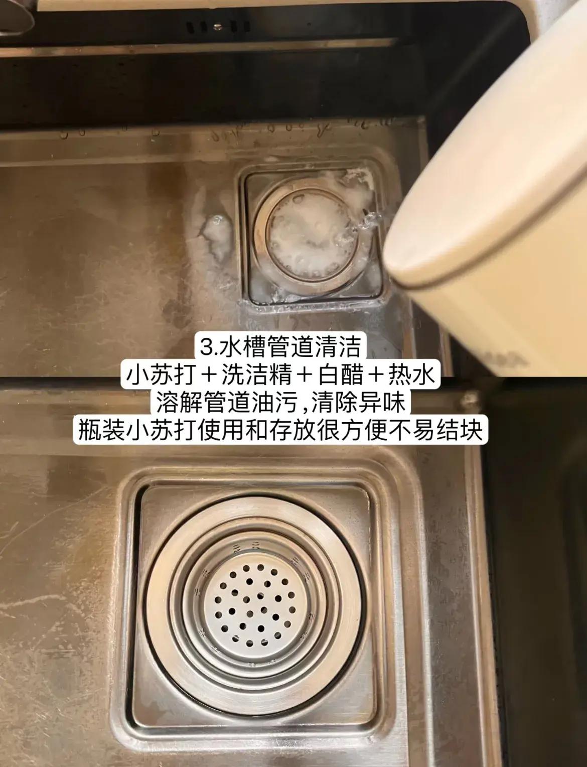 水槽管道,在此基礎上,再加點白醋進去,順帶溶解管道的油污、水垢,防止堵塞,順便異味也被消除了;