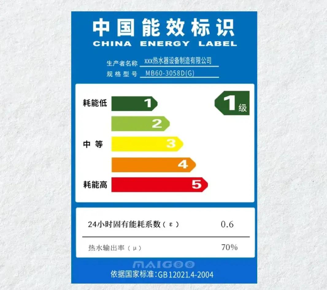 首先去看看熱水器的能效等級,數字越高代表,能耗越高、能效越低。