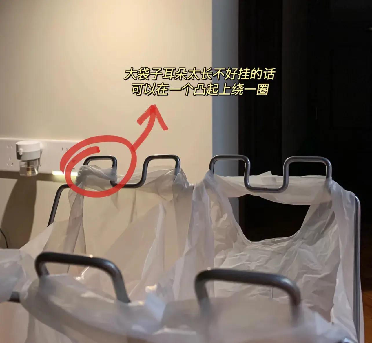 取垃圾、套垃圾袋異常方便。而且他可以兼容所有大小的廢垃圾袋,無非就是掛在第一格第二格的問題。