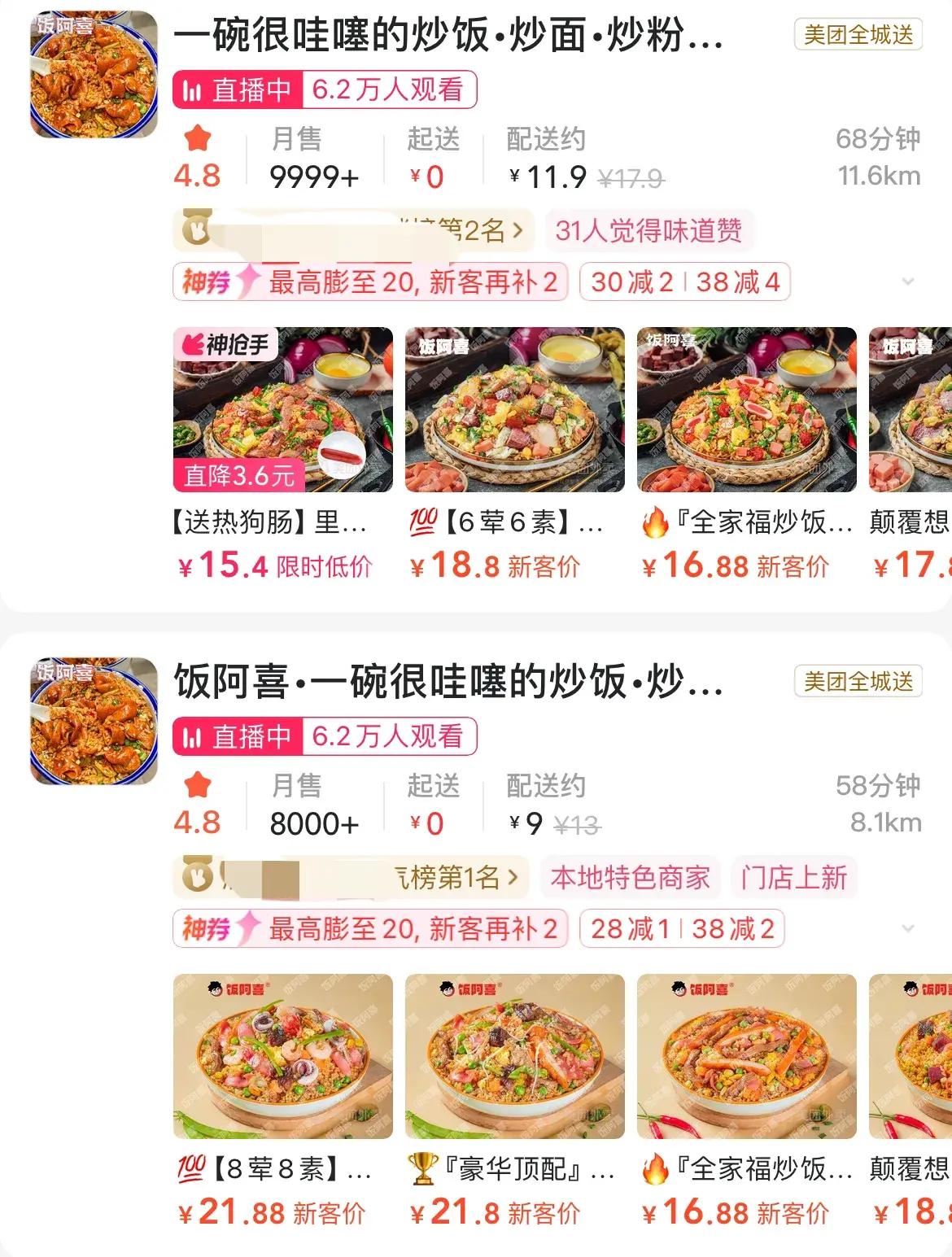 比如“這家炒飯真好喫”、“×××·一家有態度的粥店”、“一碗很哇塞的炒飯”、“一家被××耽誤的店”、“賭上廚師生涯××”、“重生之我在××賣××”......