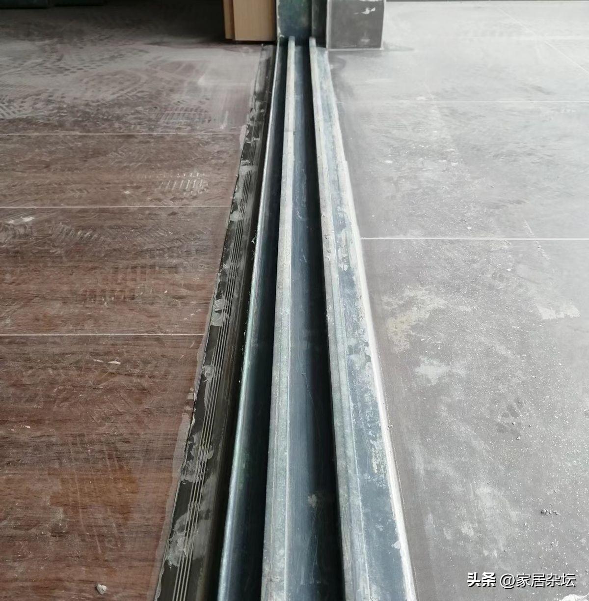 因爲地軌推拉門,需要在地面上安裝推拉門軌道。這個軌道,一般凸出一地面5毫米或者到一釐米左右。
