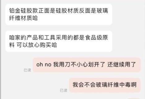 之前看某演員用着種草買的,寫的是硅膠揉麪墊,沒注意詳情頁寫着含有玻璃纖維,後來摺疊發現破了趕緊丟掉!