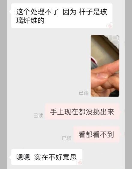 在某寶買了一個兒童帳篷,收到快遞非常開心立馬動手搭起來,結果被支撐杆上的玻璃纖維扎得好痛好痛,他看起來很光滑,但你用力一握就會被扎,更讓人抓狂的是你一摸手就痛,可怎麼也看不見在哪裏!