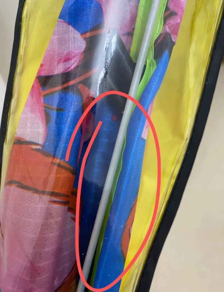 但白天我們兩個大人手上也都感覺扎進了刺。直到晚上回家後我手上挑出兩個晶瑩剔透的晶狀體,這才恍然大悟!目前先生和孩子手上的刺還都沒找到,可能還有更多吸入肺部。因爲孩子真的拿着玩兒了很久!真的很氣憤,它一定是玻璃纖維!