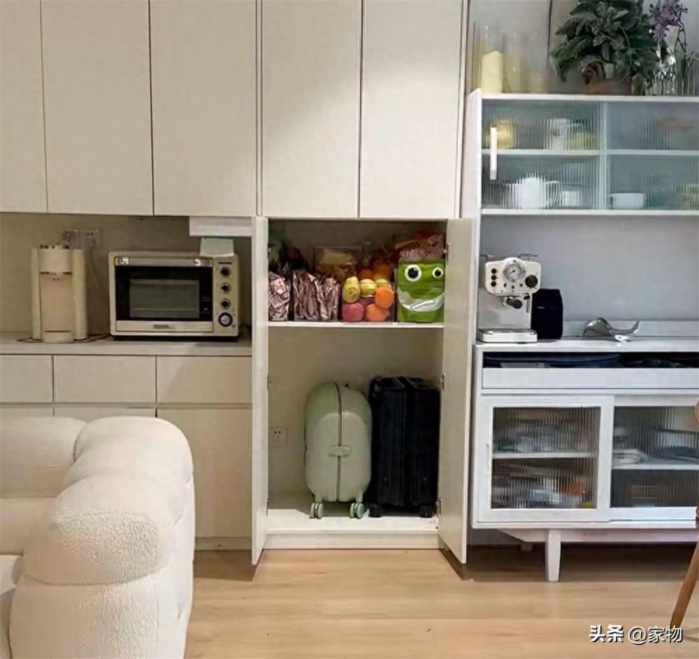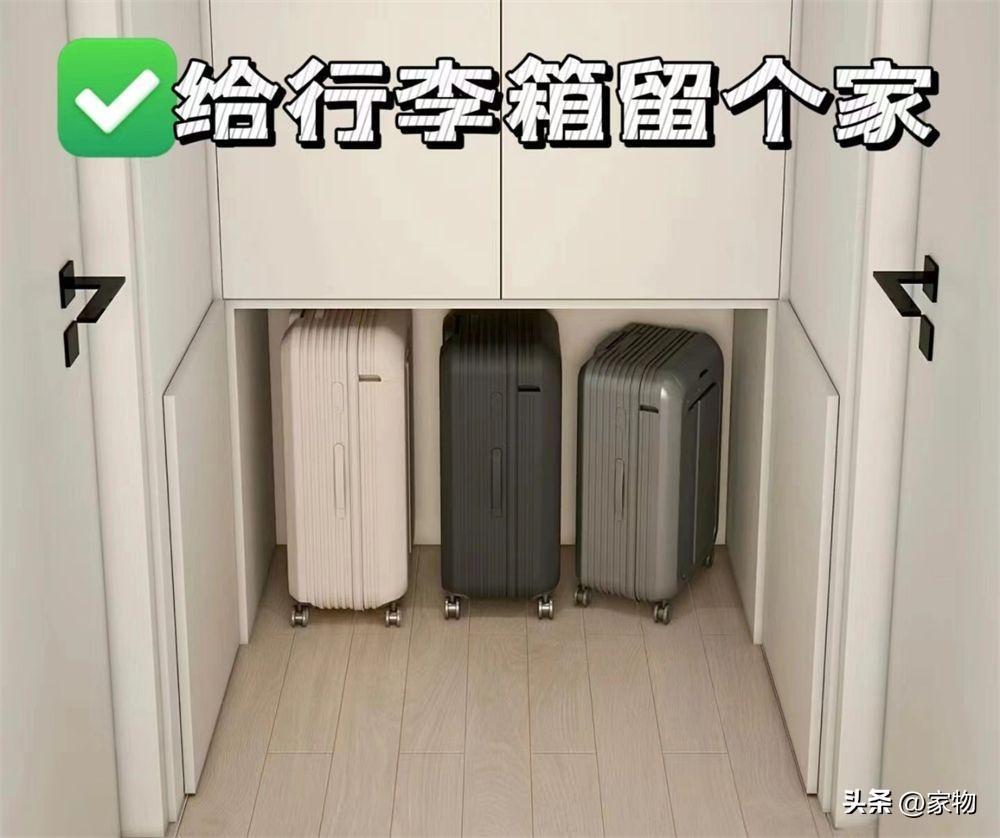 但實際上,做成無底櫃,直接將行李箱推到櫃子裏要更加方便省力一些,裝修時就可以提前預留。