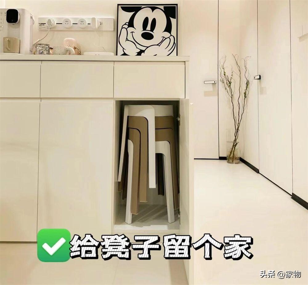 還是那句話,如果家裏有家政櫃可以放得下,可以直接放到家政櫃裏,如果放不下,可以根據凳子是疊放還是摺疊平面收納,來決定做什麼樣的收納櫃,隱藏收納起來總歸是更好看的,卻有很多人忘記去做。