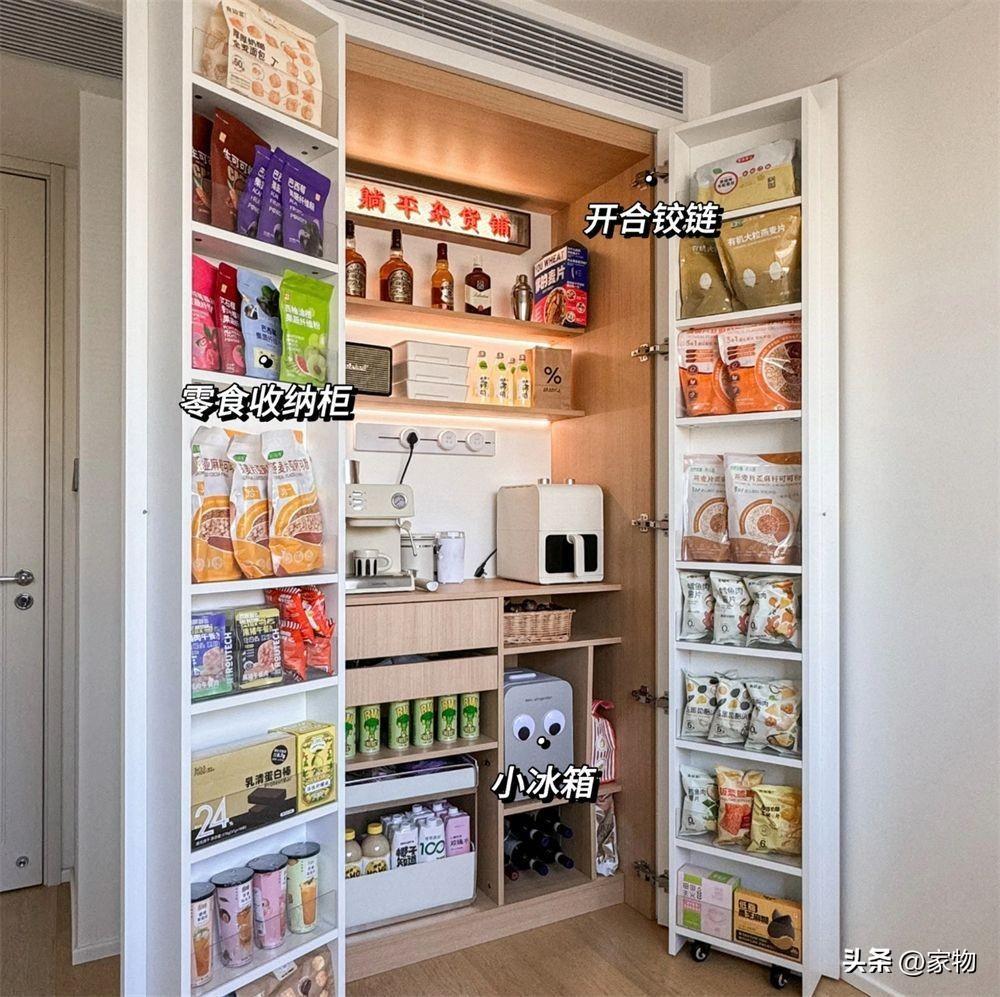 更是可以把餐邊櫃乾脆改成酒櫃、水吧、零食櫃,開放式和帶櫃門的都行,總之,餐邊櫃的收納,並不限制於水杯和碗碟餐具,更像是個帶裝飾效果的小件收納櫃。