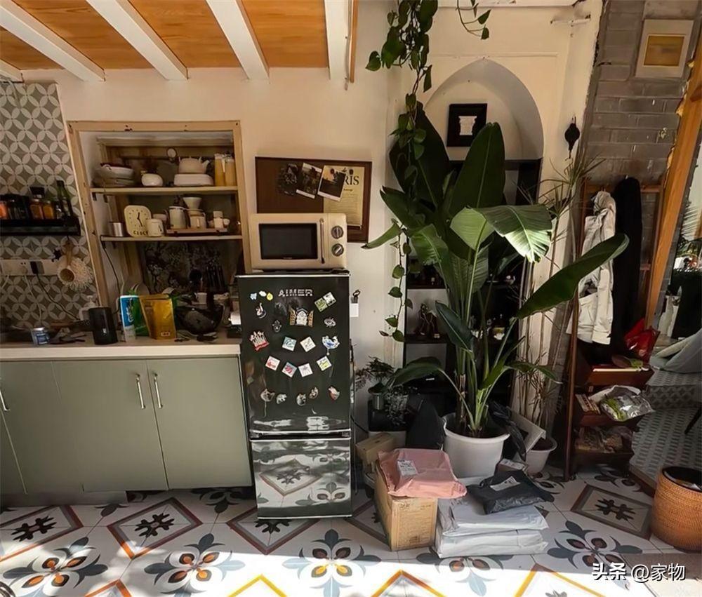 冰箱放中間,另一邊可以放下大株的天堂鳥,和小院這帶點田園風的氛圍也很搭。
