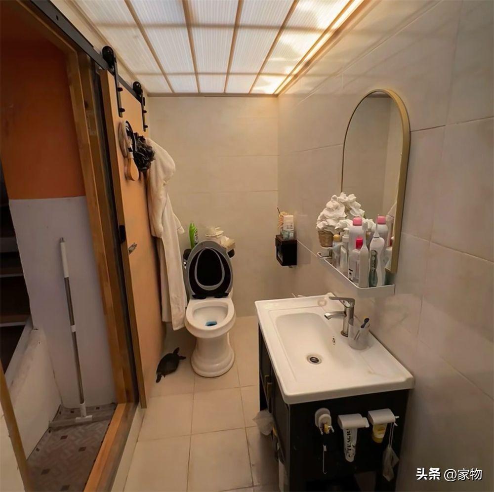 小屋盡頭是家裏的衛生間,說它是暗衛吧,確實,畢竟沒有窗戶,但頭頂卻有一道透光的棚頂,讓衛生間內顯得格外光亮,雖不是明衛,但勝似明衛,日常如廁洗漱沐浴毫不礙事。