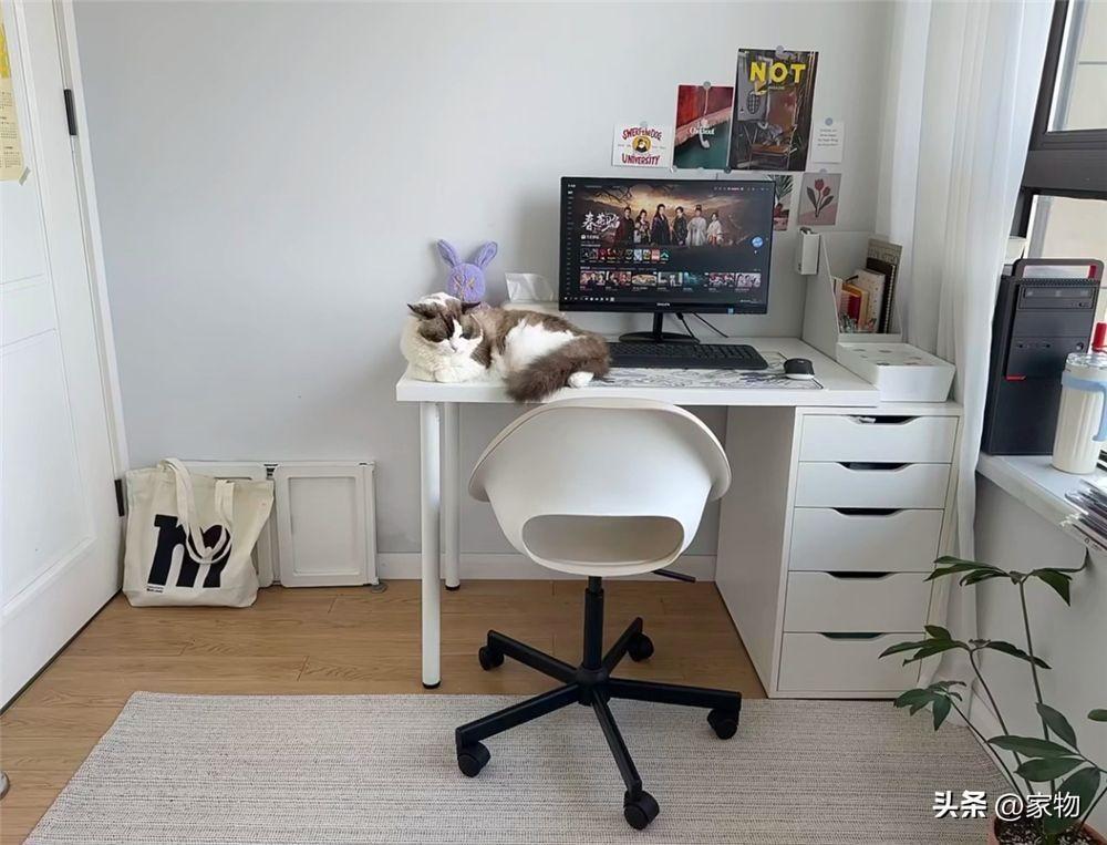 桌面雖小,卻也足夠一人使用,最起碼放下鍵盤鼠標顯示器後,也有一定的書寫區域,辦公、打遊戲或者看個電影追個劇,都很舒服,5㎡的迷你臥室,麻雀雖小五臟俱全!