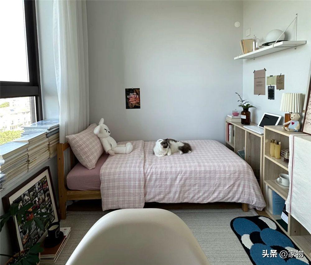 最近,我發現了一位江蘇姑娘(@一盞廊燈)家裏的臥室,面積雖然只有5㎡左右,但卻佈置得既乾淨愜意,又很實用。