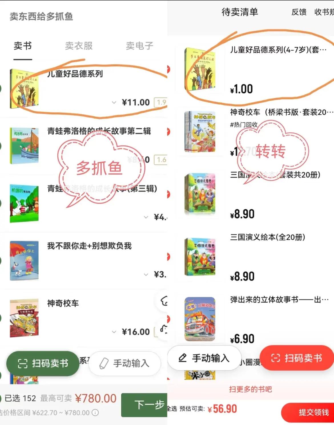以前我以爲的書專賣,就是廢品站,賣了很多次之後,才知道專門收書的平臺是多抓魚、書遁。