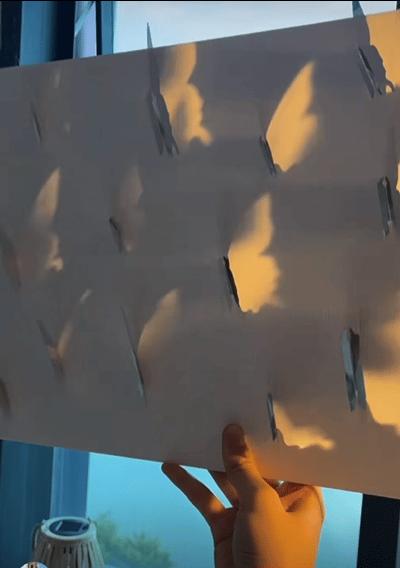這個蝴蝶光影畫,就更是如此了,隨着光線的改變,蝴蝶的翅膀就像激活了一樣,來回煽動、十分靈動。