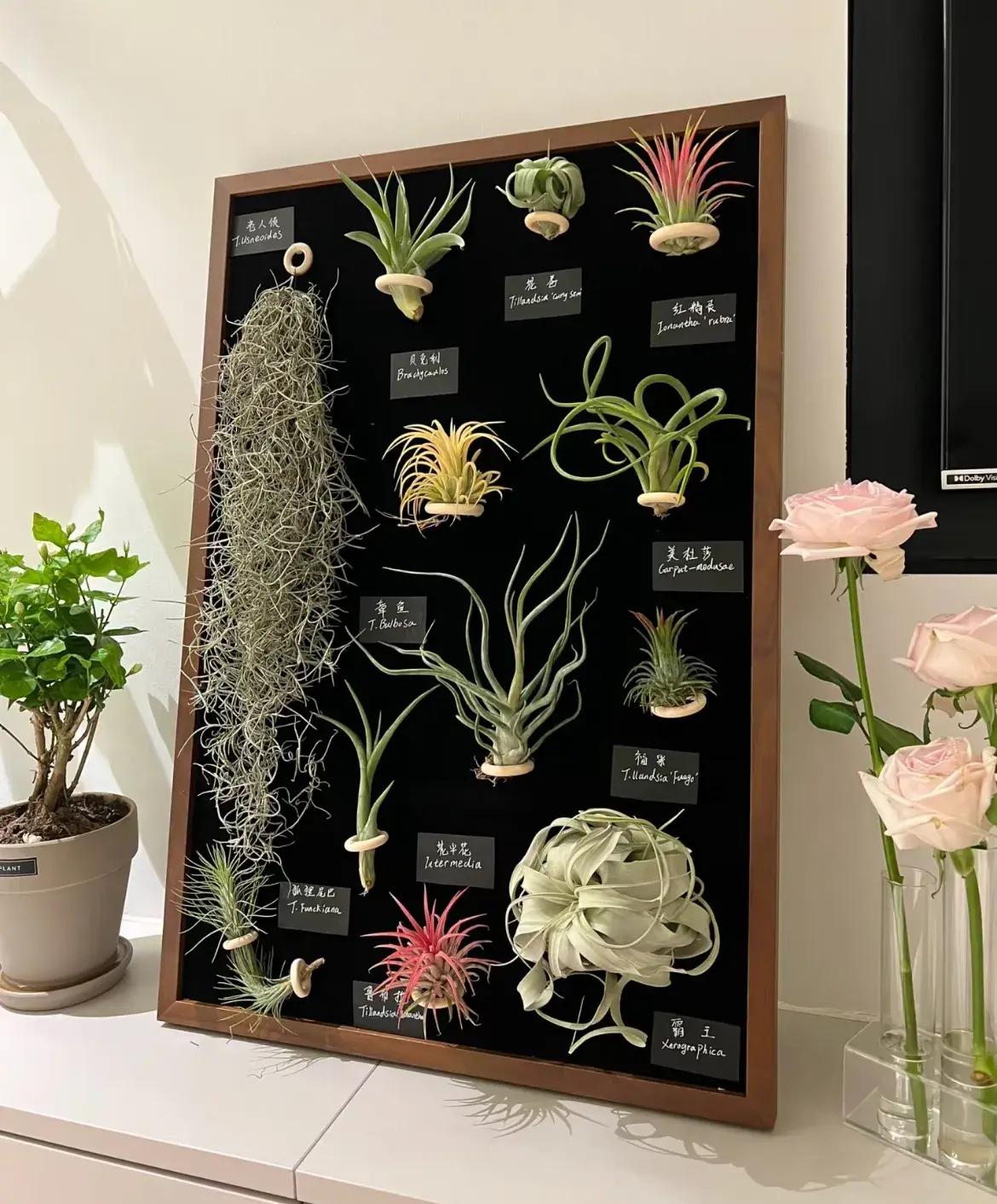 也可以做一整面的空氣鳳梨畫板,是畫作,也是花架,我還沒見過這麼生機勃勃的畫呢。