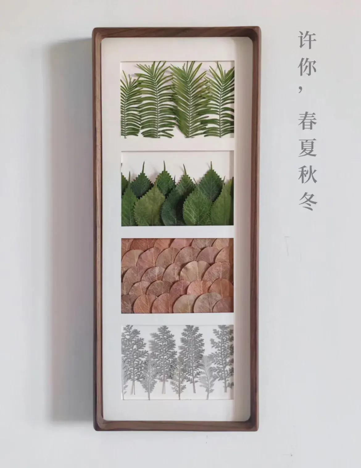 風乾的葉子直接貼在畫框上,從此便是永生,是掛畫,也是紀念。