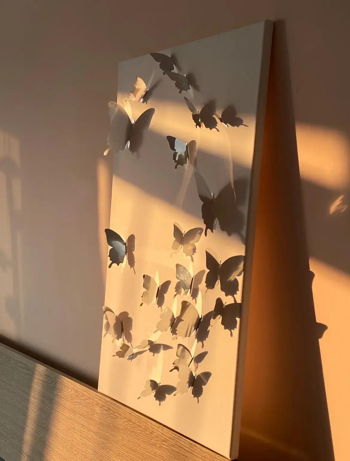 而這樣一幅靈動的光影蝴蝶畫,也不過是花了十幾塊錢買的鏡面蝴蝶,然後一分爲二,粘貼來的。