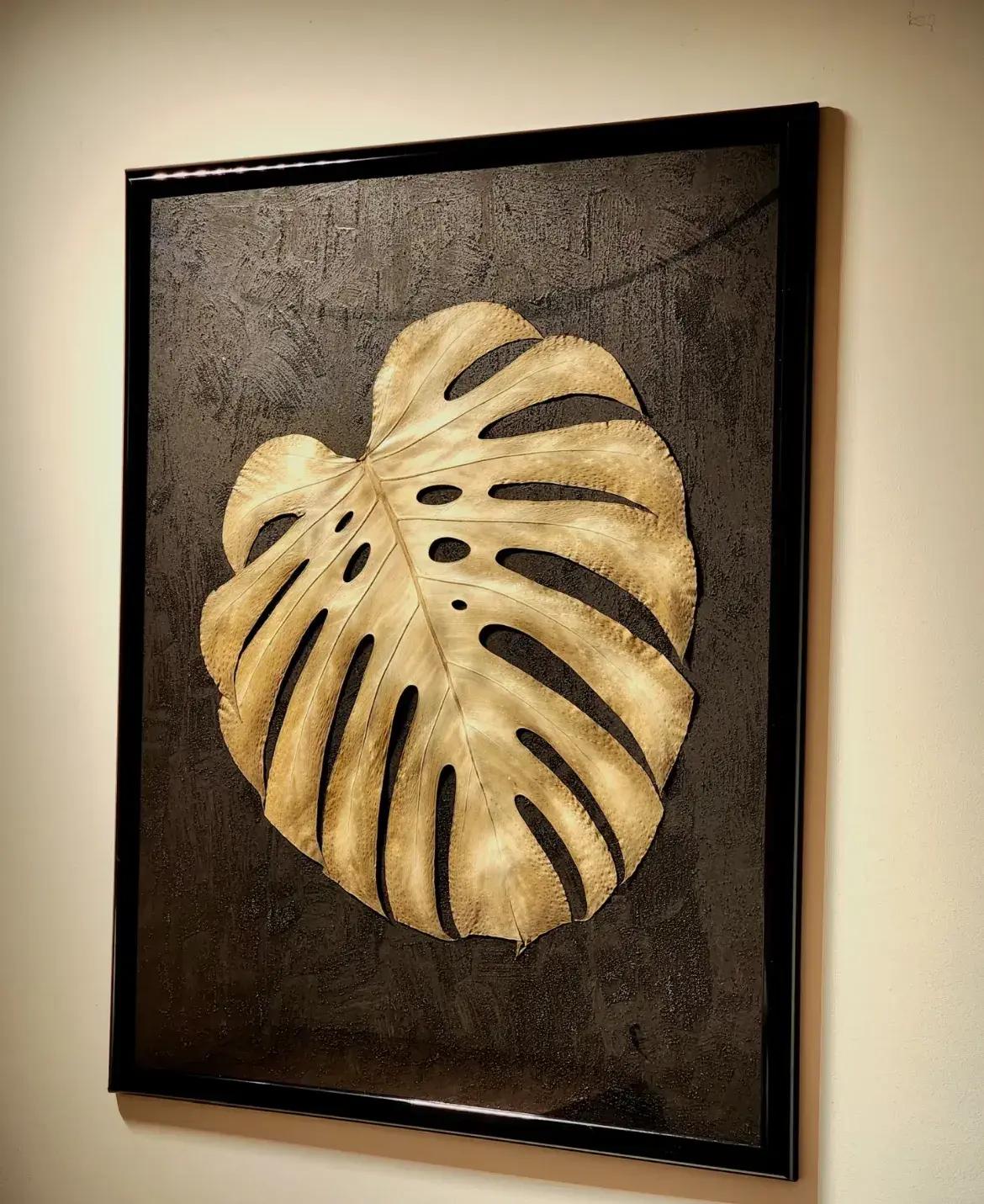 下面就是一位網友用自己養壞的龜背竹,做成的掛畫。