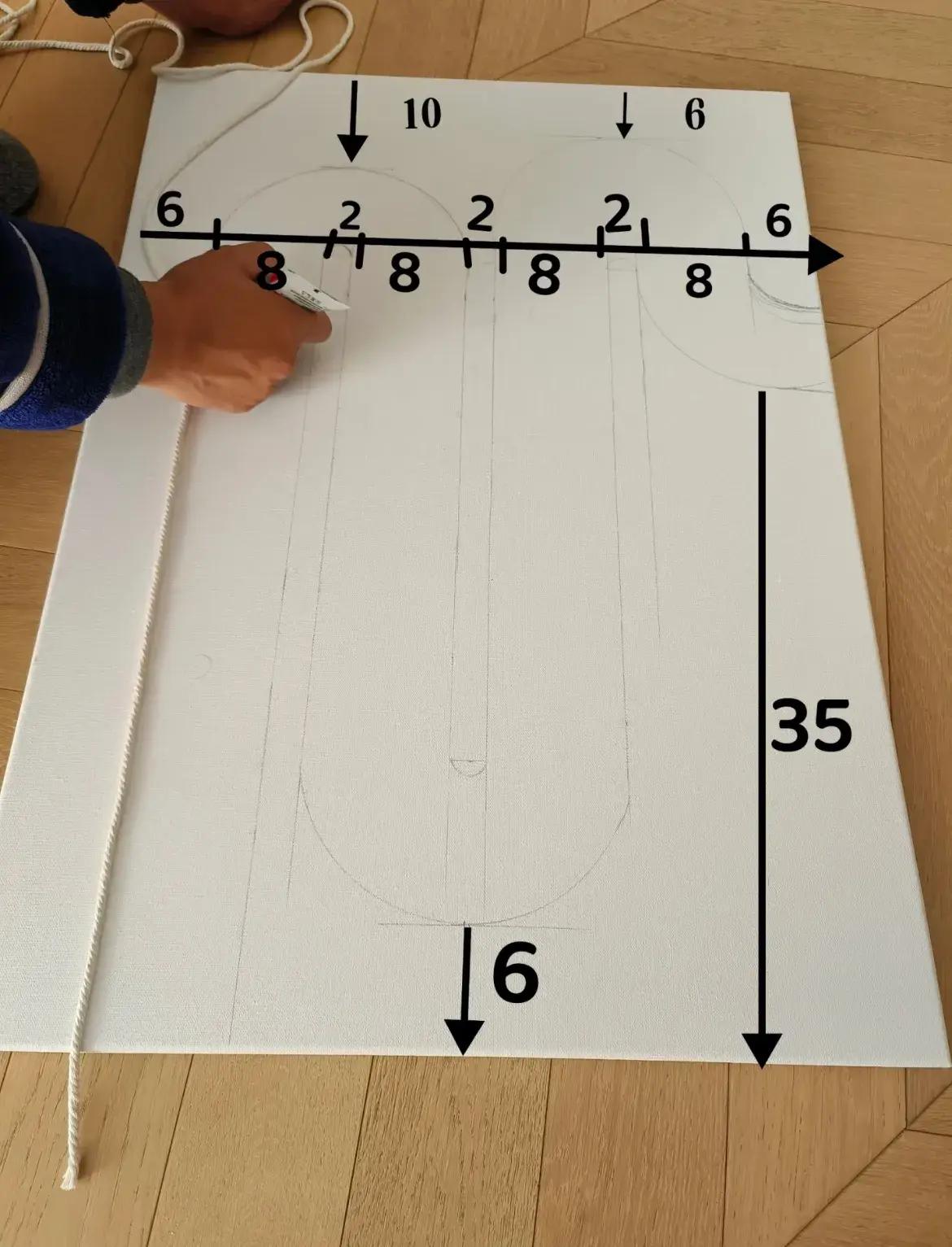 當然,爲了協調好看,拐彎的半圓形得成比例,如上圖,50cm寬的畫板,用18cm直徑的兩個圓,就很合適。
