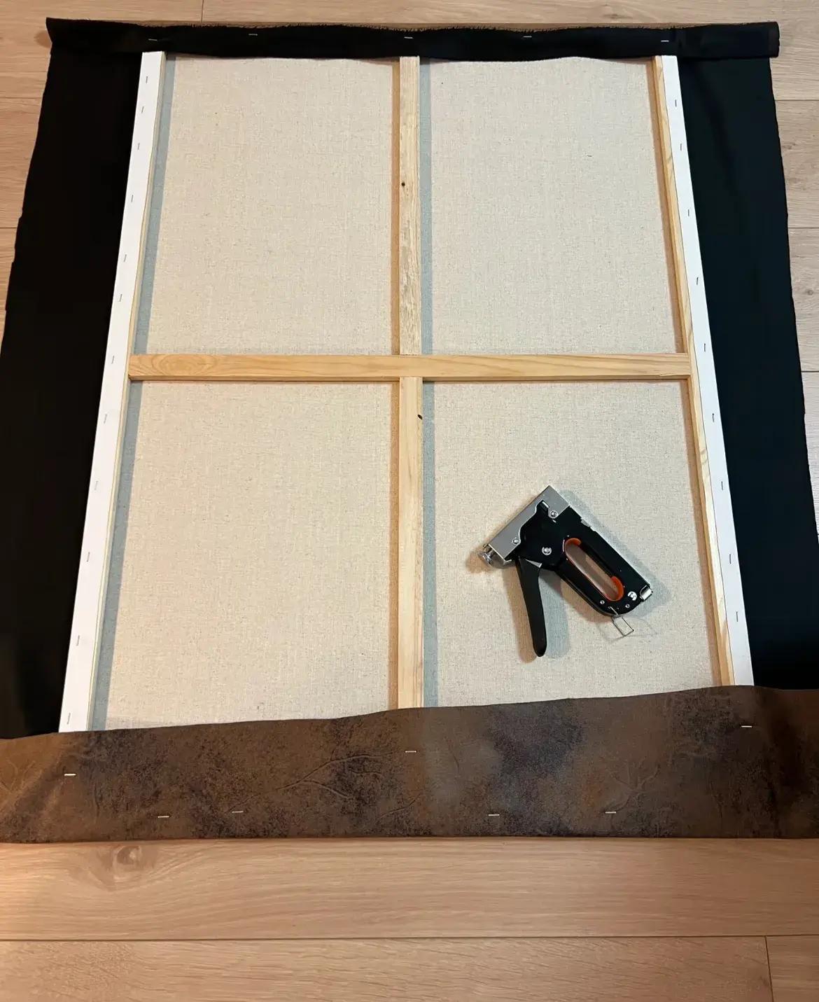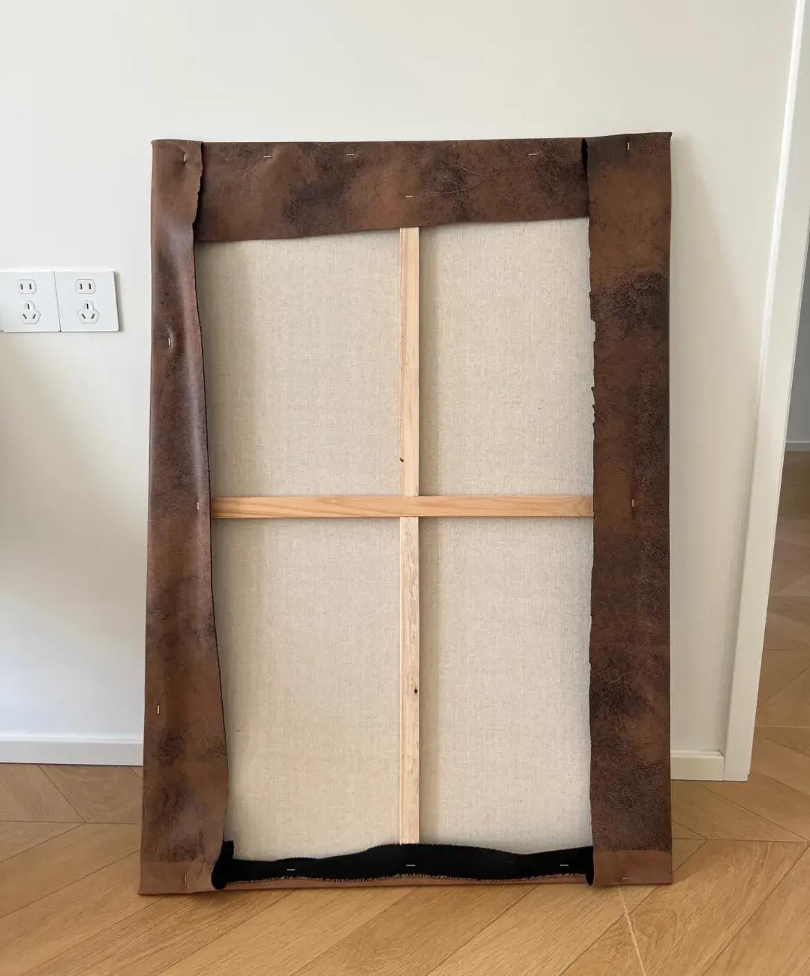 除了皮質的料子,布料也可以用這個方法,油畫布外包也好、相框內嵌也行,總之是花了最少的錢,達到了自己最想要的效果。